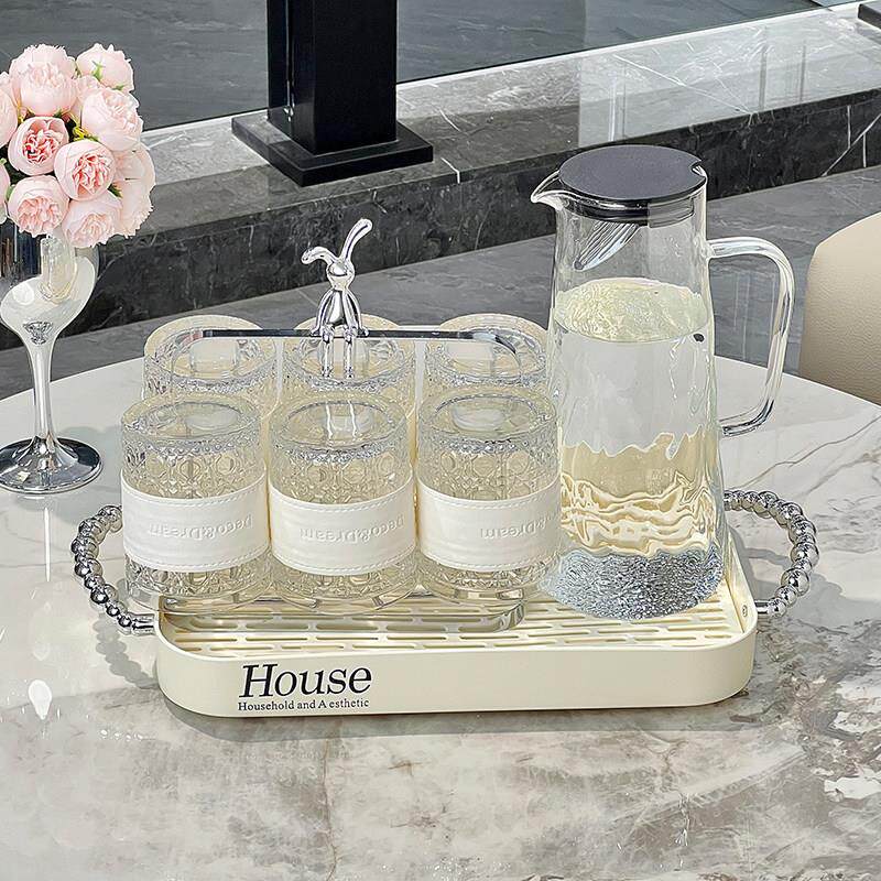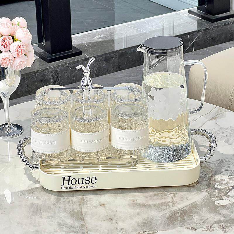 轻奢玻璃杯家用高级感耐高温水杯家庭杯子客厅泡茶杯杯具待客套装