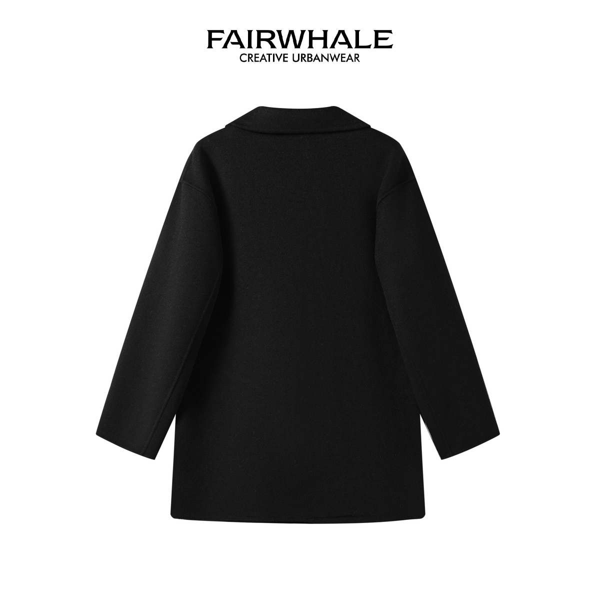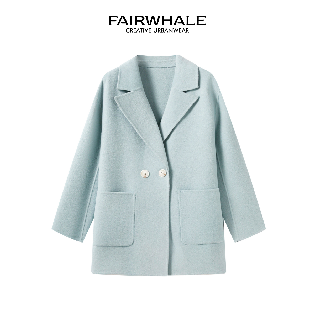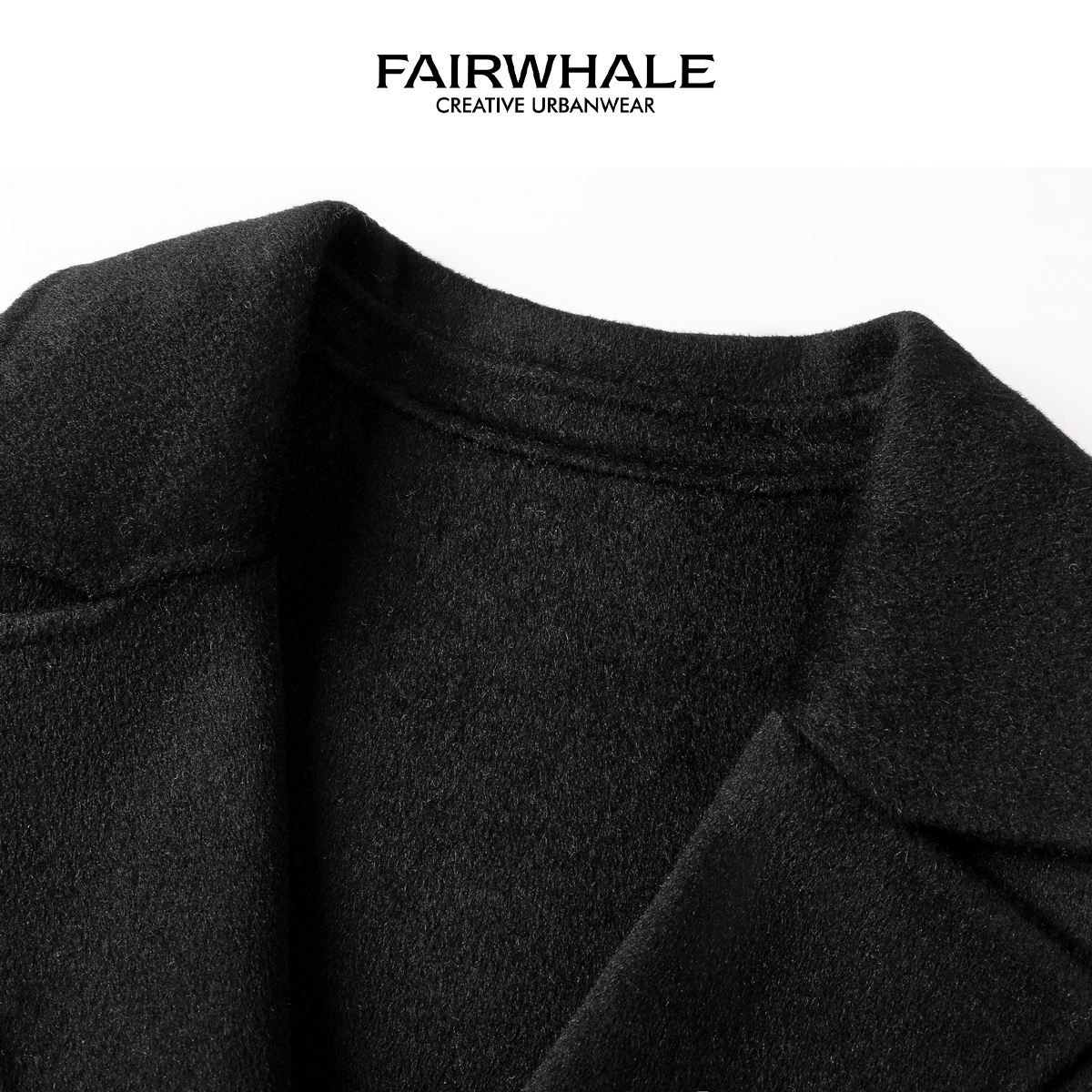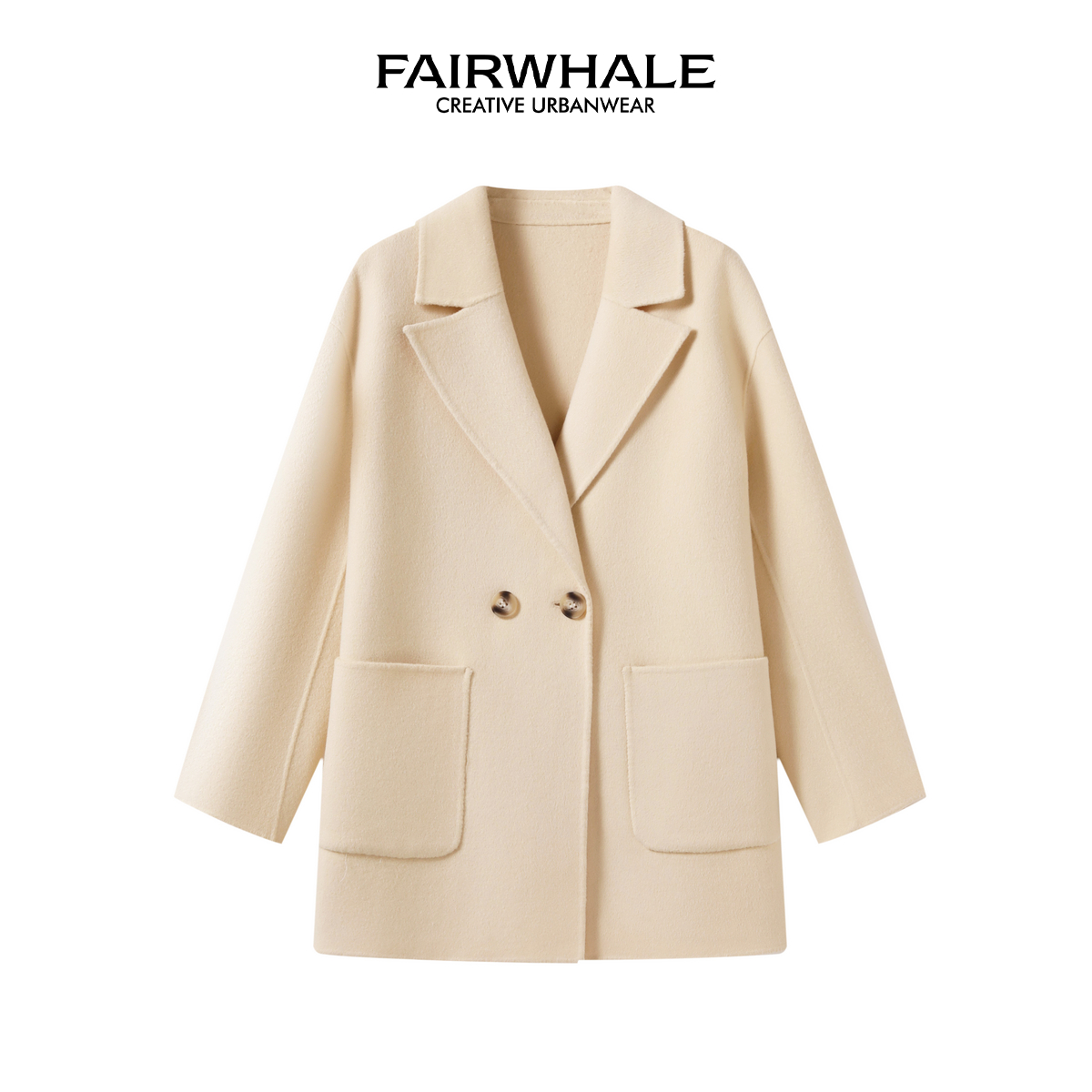 马克华菲时尚百搭双排扣翻领中长款长袖大衣秋季绵羊毛西装领外套