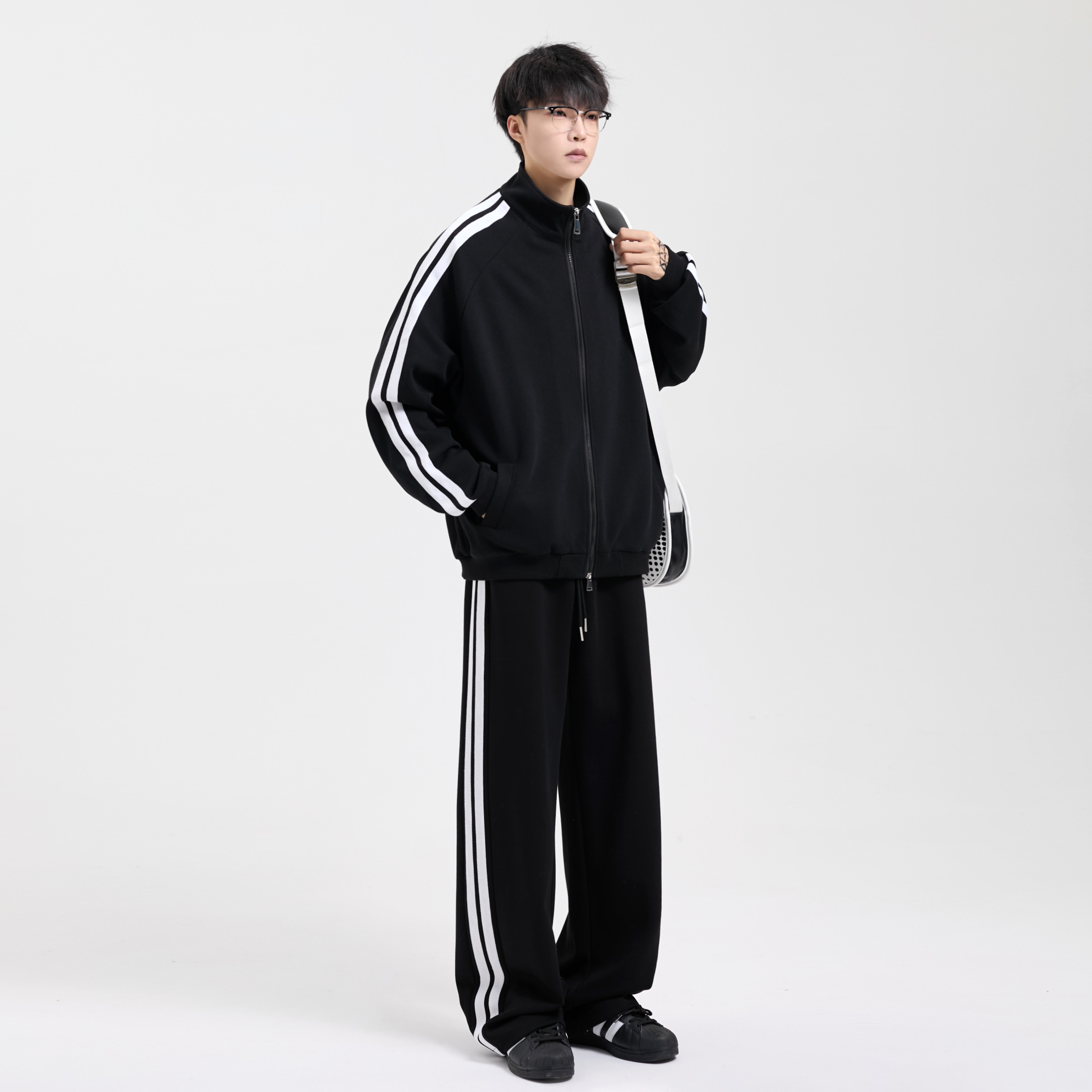 迈特优美式条纹运动套装男秋冬一整套青少年宽松百搭休闲卫衣外套