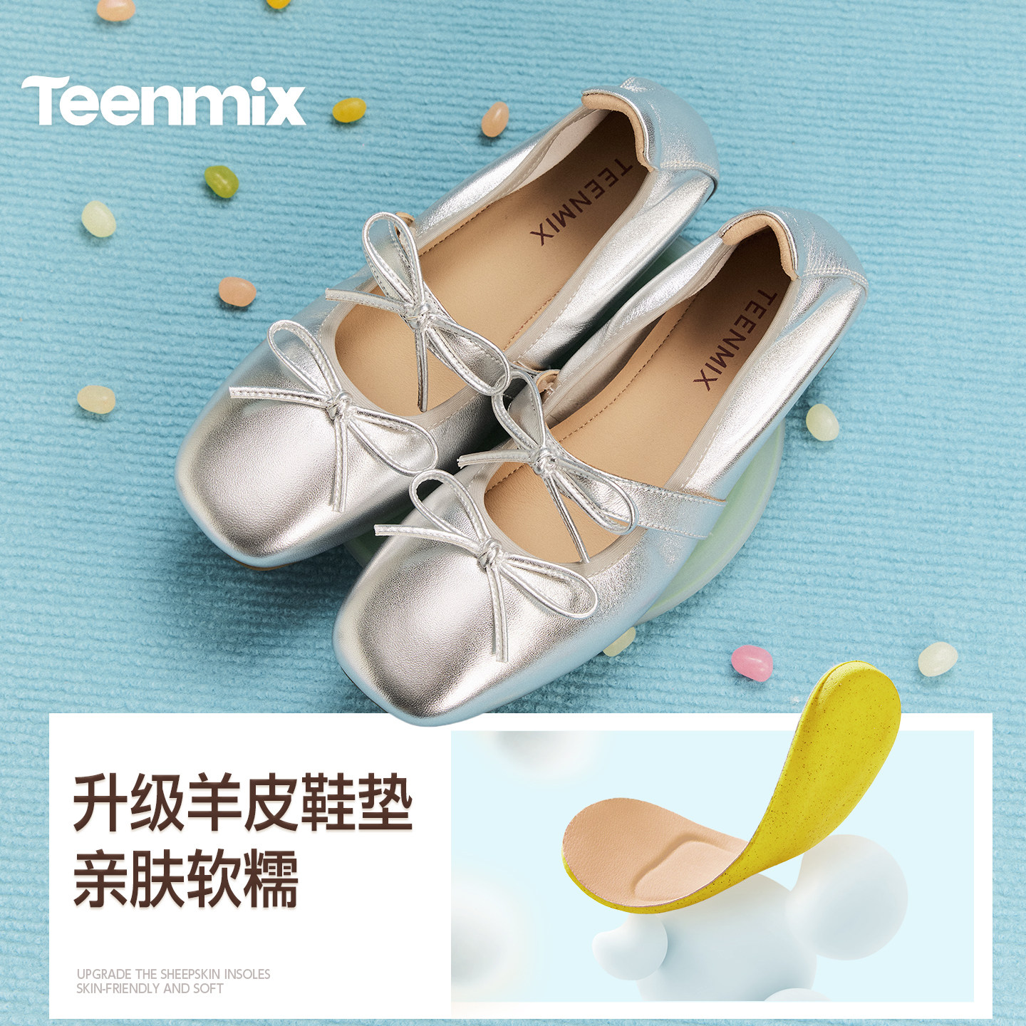 天美意彩虹夹心软糖内增高芭蕾玛丽珍鞋女软底红色小皮鞋浅口单鞋