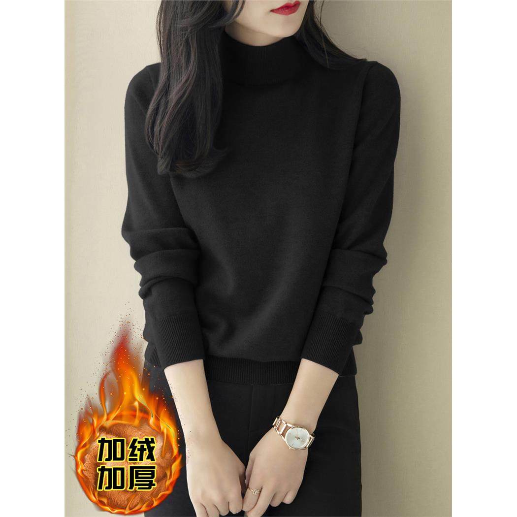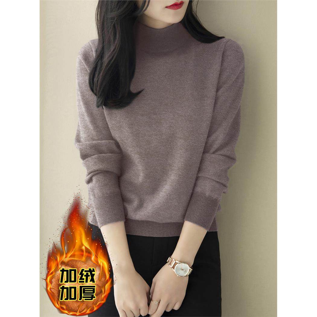 春季新款半高领宽松加绒加厚打底毛衣女装一体绒水貂绒灰色针织衫