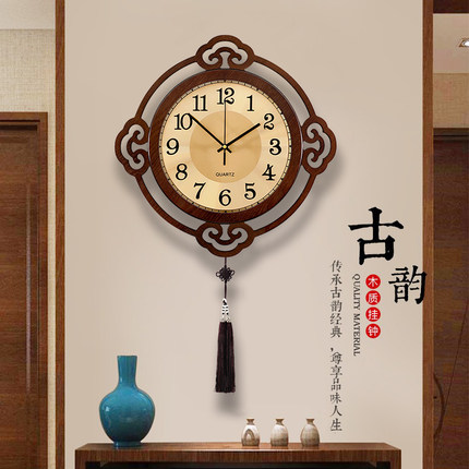 新中式客厅挂钟挂墙上中国风挂表创意时尚时钟大气免打孔家用钟表