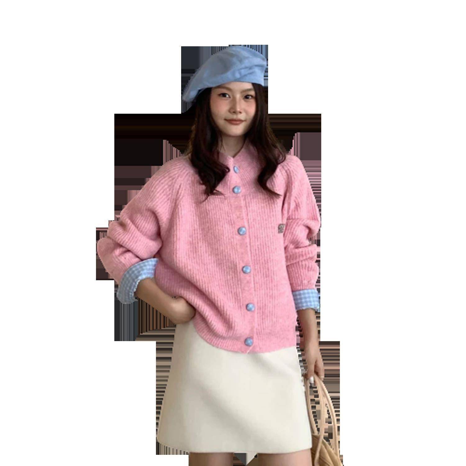 韩系宽松减龄气质针织开衫女上衣秋冬季小个子半高领外穿毛衣外套
