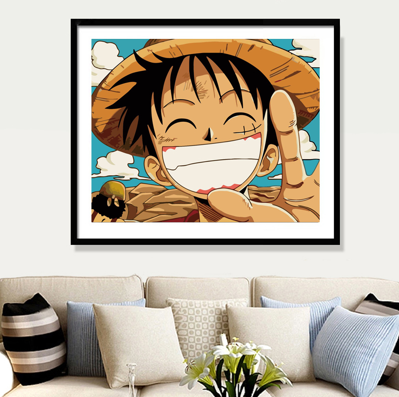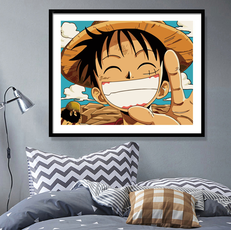 卡通动漫钻石画满钻新款2025海贼王路飞简单小幅点贴钻十字绣卧室