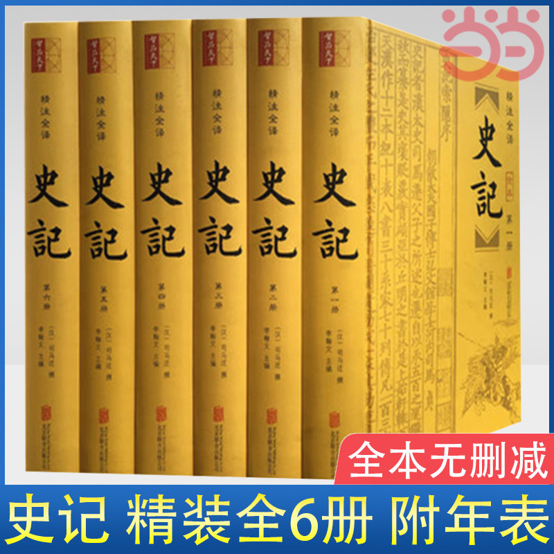 当当网 史记全册正版书籍精装原著6册 附年表 司马迁全本无删减文白对照全注全译 生僻字注音 资治通鉴二十四史历史类书籍畅销书