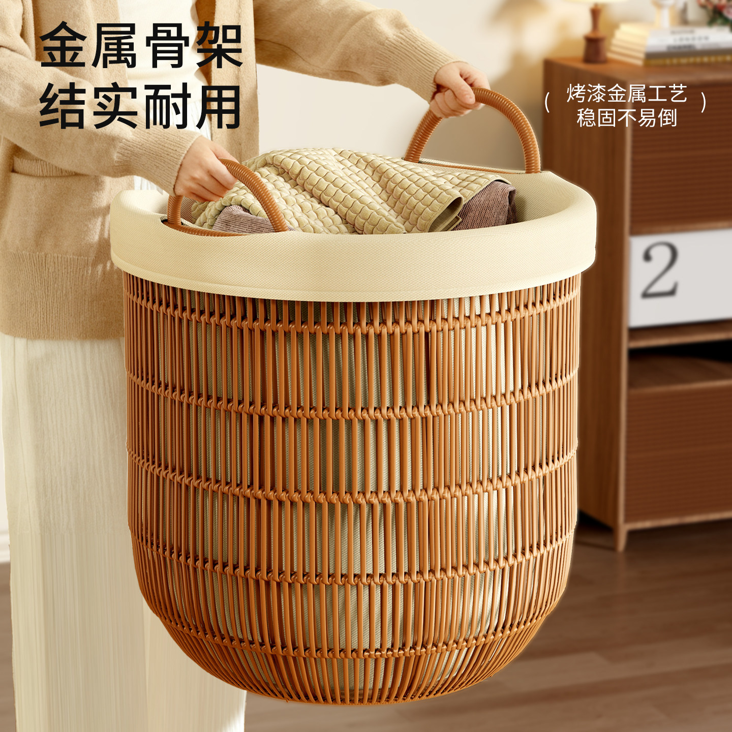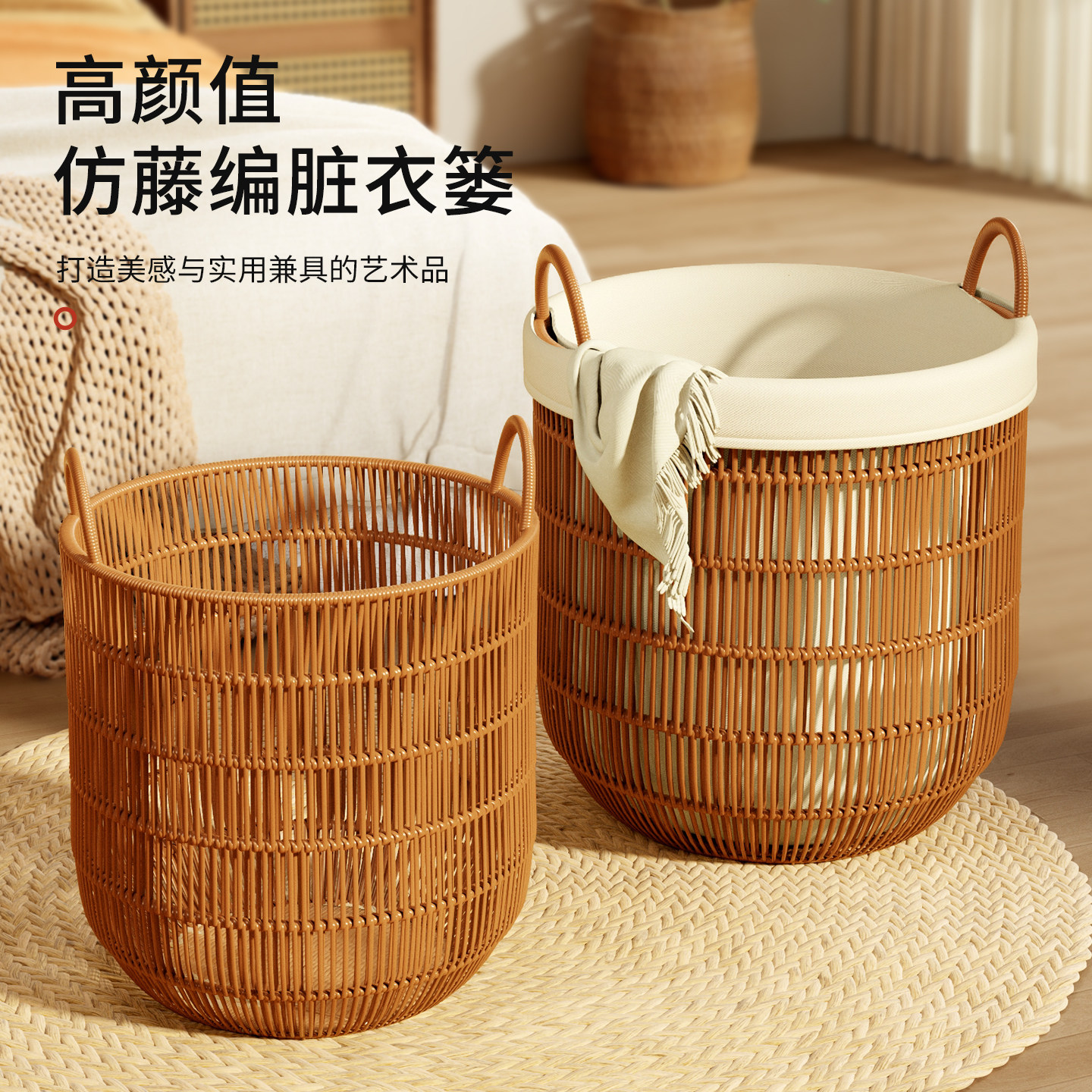 脏衣服收纳筐藤编放衣服脏衣篓高颜值轻奢家用脏衣篮高级感洗衣篮