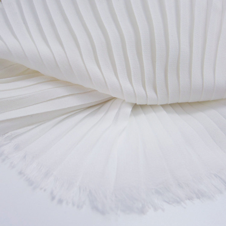 新品服装布料 白色风琴百褶压皱珍珠雪纺半身长连衣裙面料0.5cm