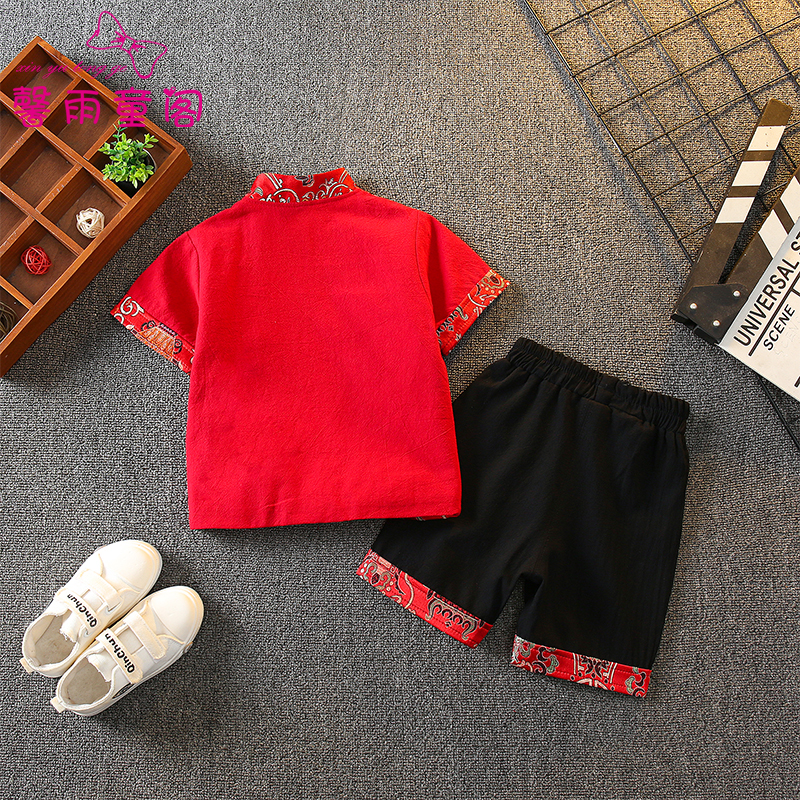 男童汉服夏季短袖薄款中国风儿童唐装宝宝周岁礼服古装高端民族服