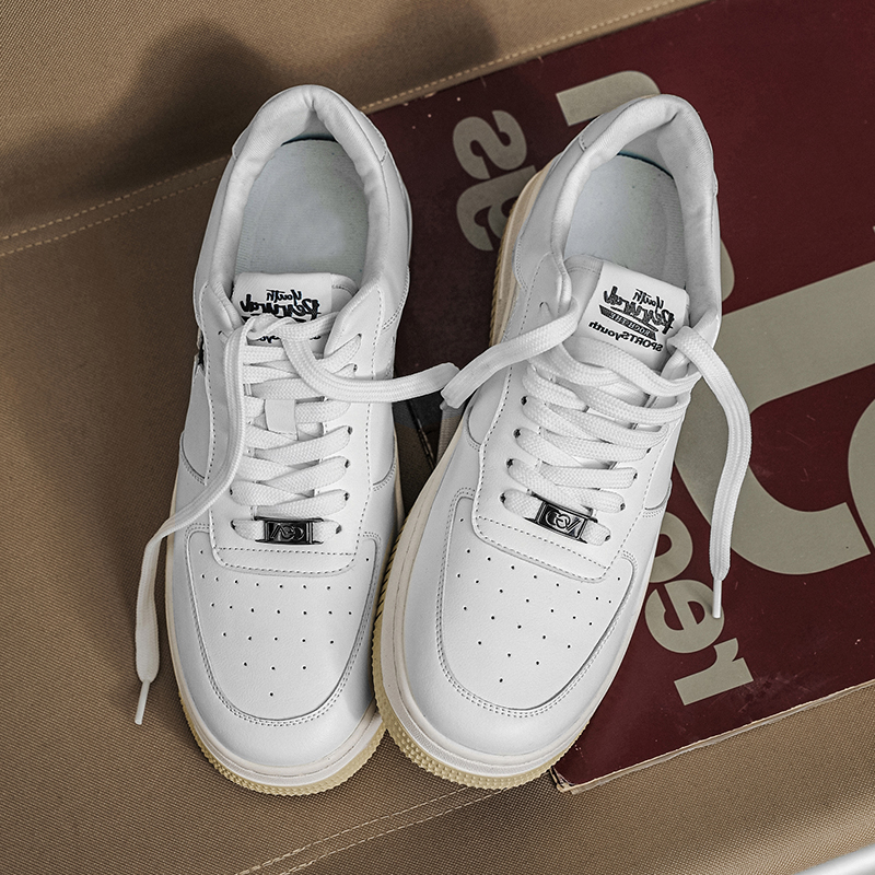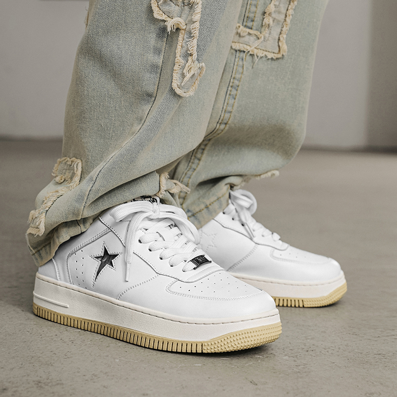 男鞋秋季透气休闲运动鞋小众设计潮牌情侣低帮板鞋真皮厚底小白鞋