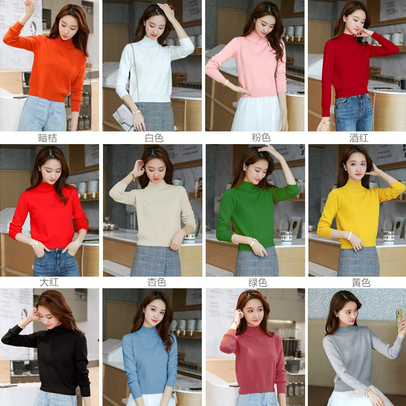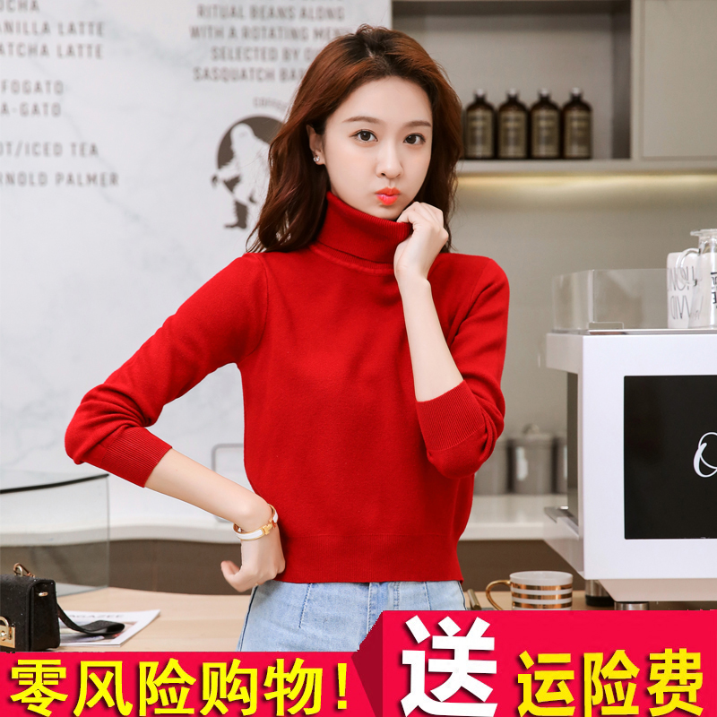 白色高领毛衣女加厚秋冬新款女装小个子短款针织衫修身内搭打底衫