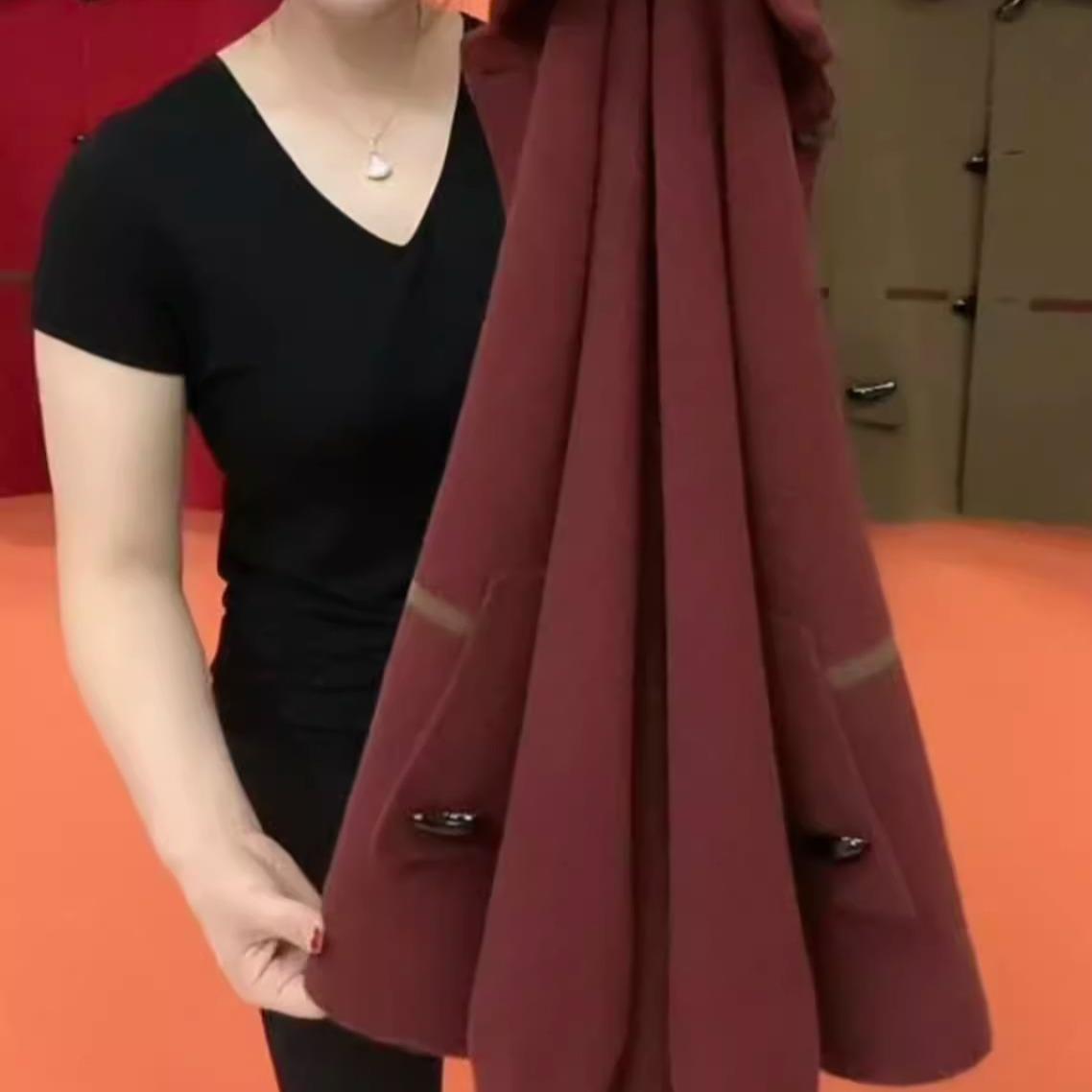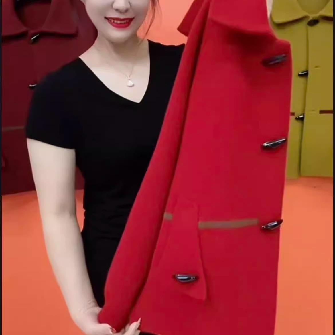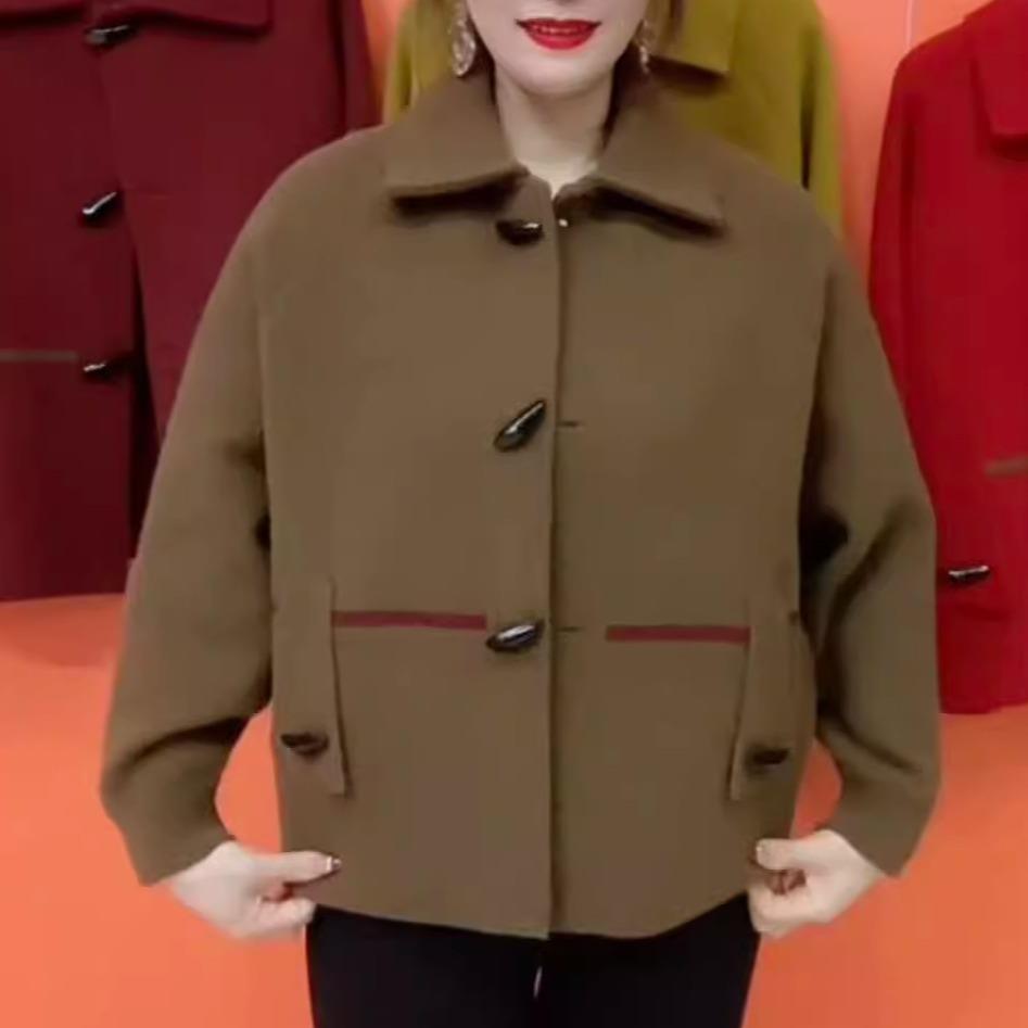 牛角扣毛呢外套中老年妈妈装秋冬新款宽松翻领双面呢大衣减龄百搭