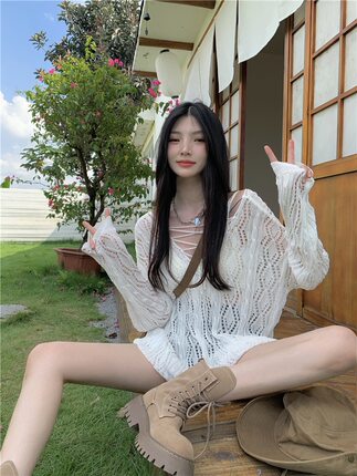 比基尼罩衫露背外套温泉游泳衣外搭针织镂空海边沙滩防晒衫外罩女