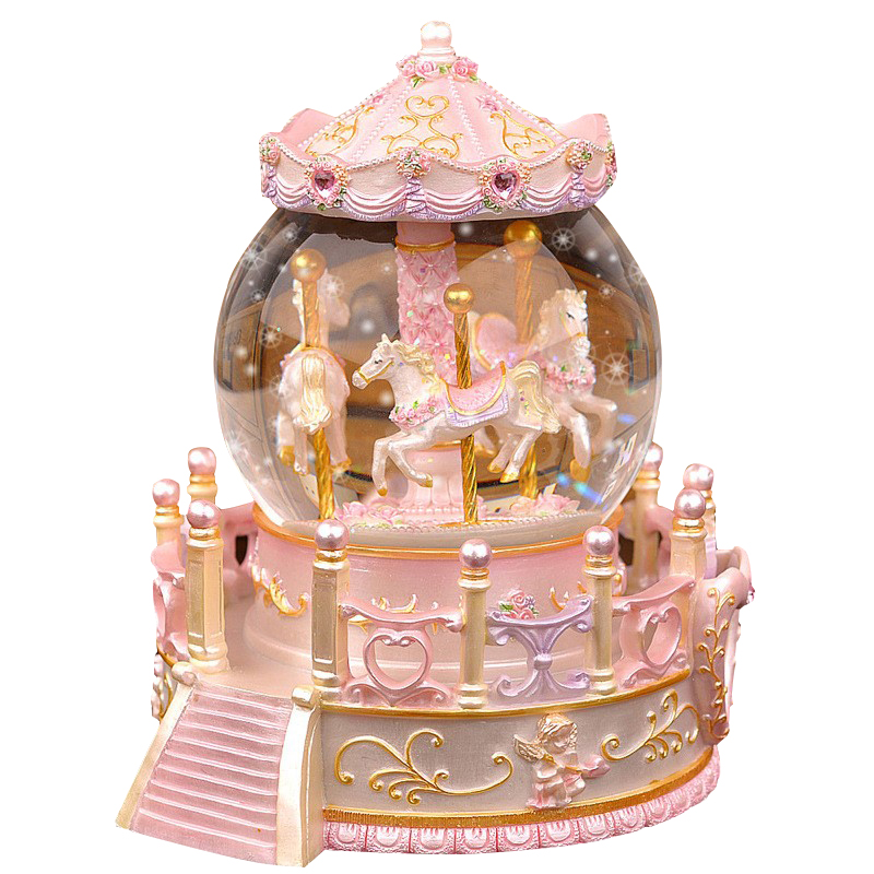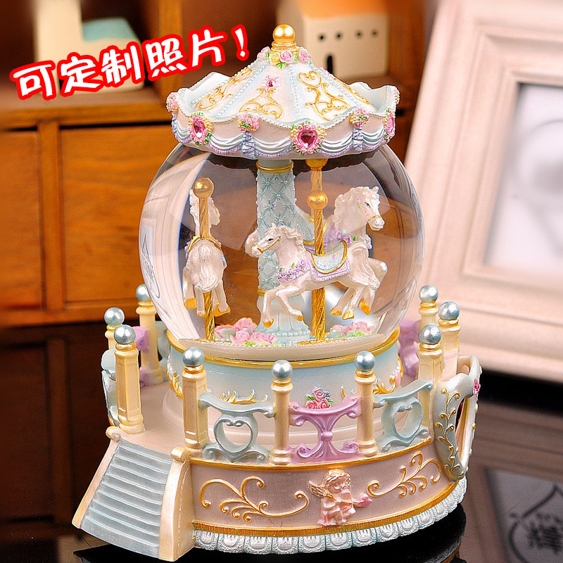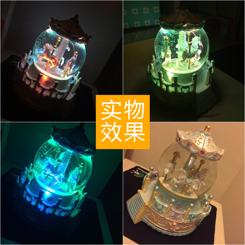 旋转木马水晶球公主音乐盒摆件飘雪八音盒女生儿童生日礼物情人节