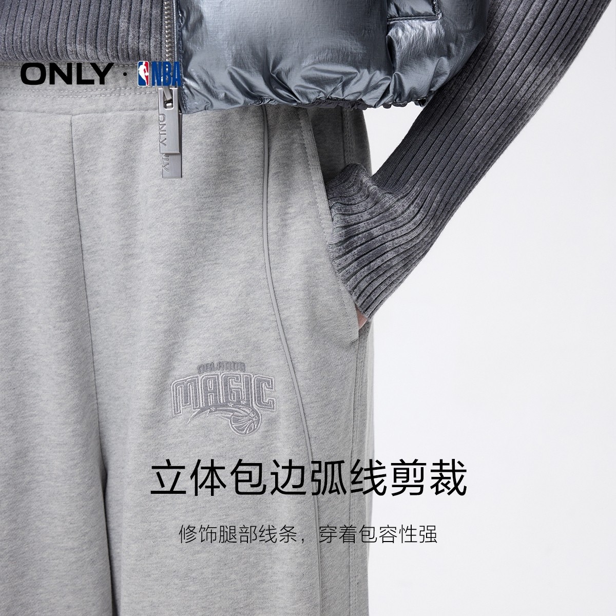 ONLY冬季NBA联名款高腰显瘦纯棉长裤休闲裤子|12441D004