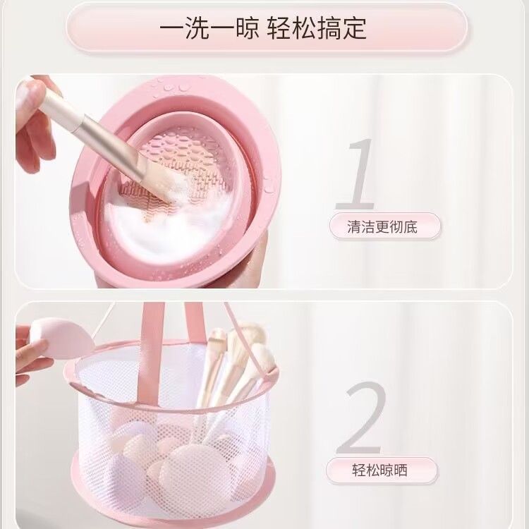 化妆刷清洗器美妆工具清洁神器海绵气垫粉扑清洗盒三件套晾晒网兜
