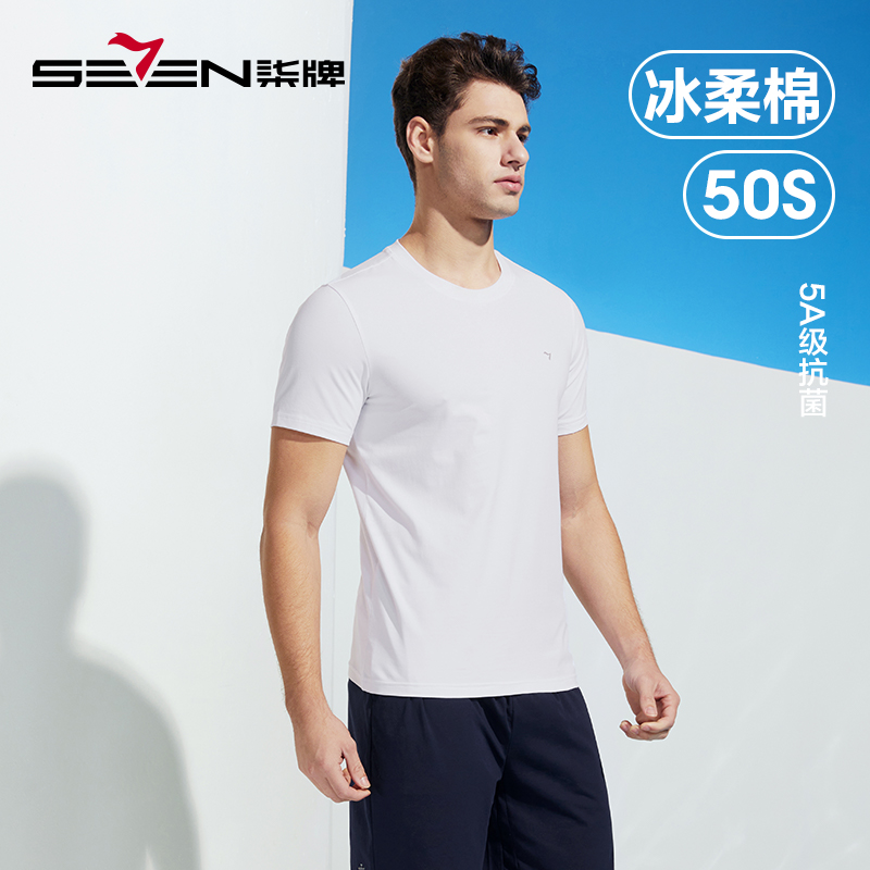 柒牌男士短袖抗菌打底上衣男生运动休闲商务圆领百搭t恤衫棉外穿