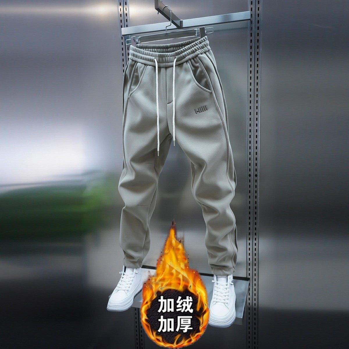 高端刺绣运动休闲裤子男士秋冬加绒新款哈伦九分宽松束脚潮流卫裤