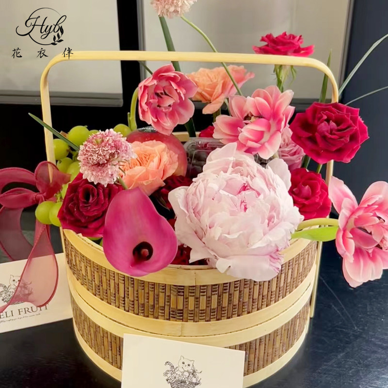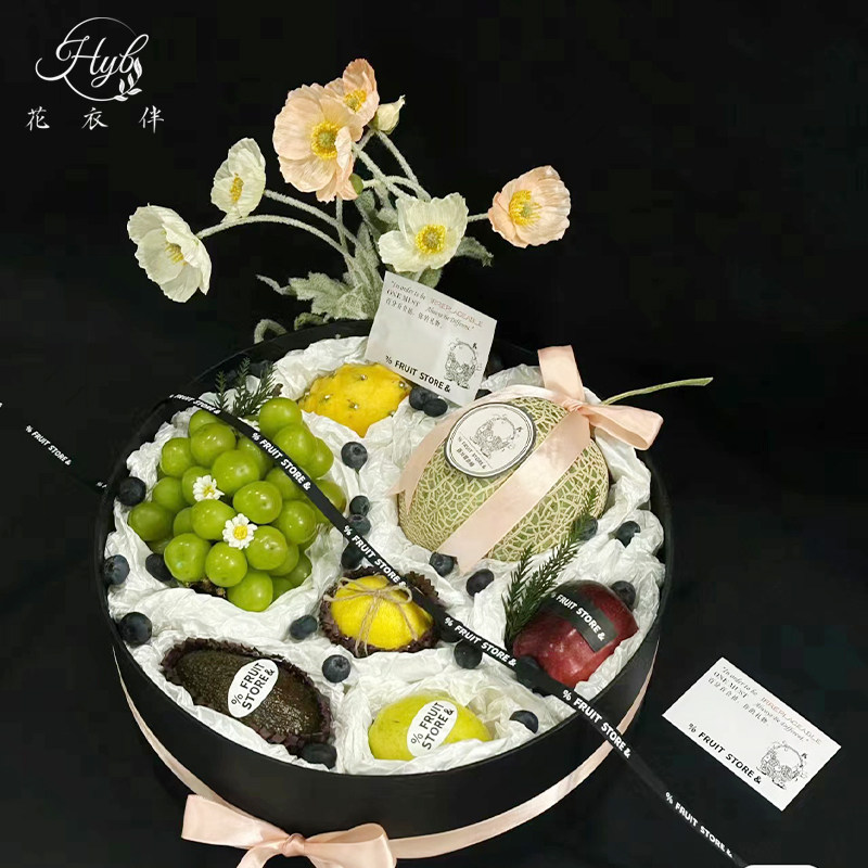 入冬四件套水果礼盒鲜花花束包装盒高档开窗圆盒亚克力透明方盒
