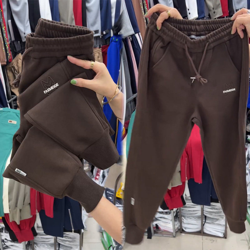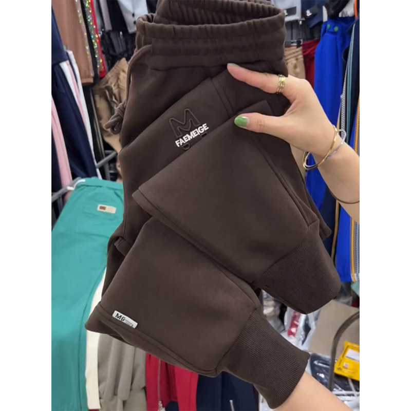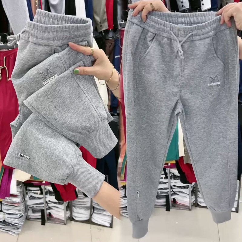 加绒休闲卫裤女秋冬季新款纯棉加厚束脚哈伦裤宽松百搭小脚运动裤