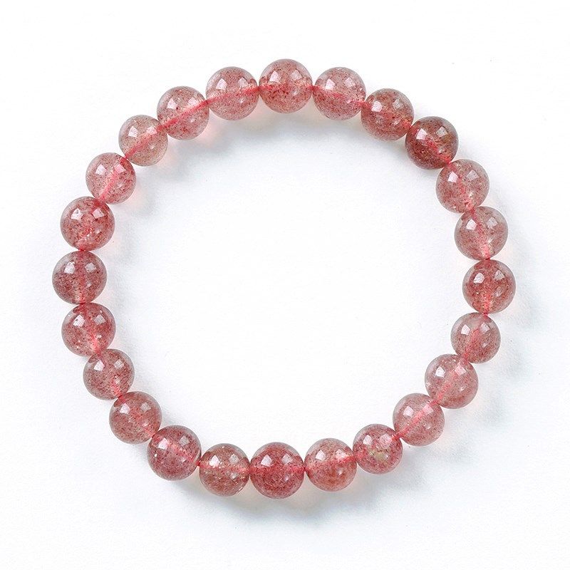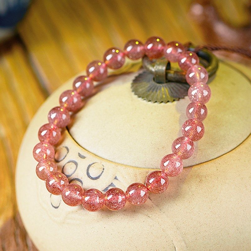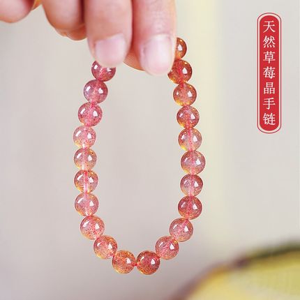 天然草莓晶单圈手链女款冰种浅粉色水晶手串送朋友闺蜜手饰品气质