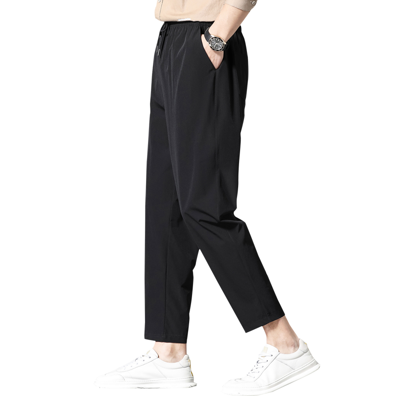 罗蒙裤子男款夏天直筒运动速干休闲裤男裤夏季薄款冰丝宽松九分裤