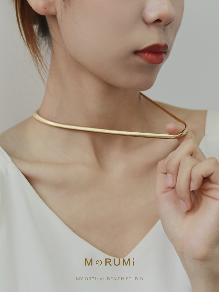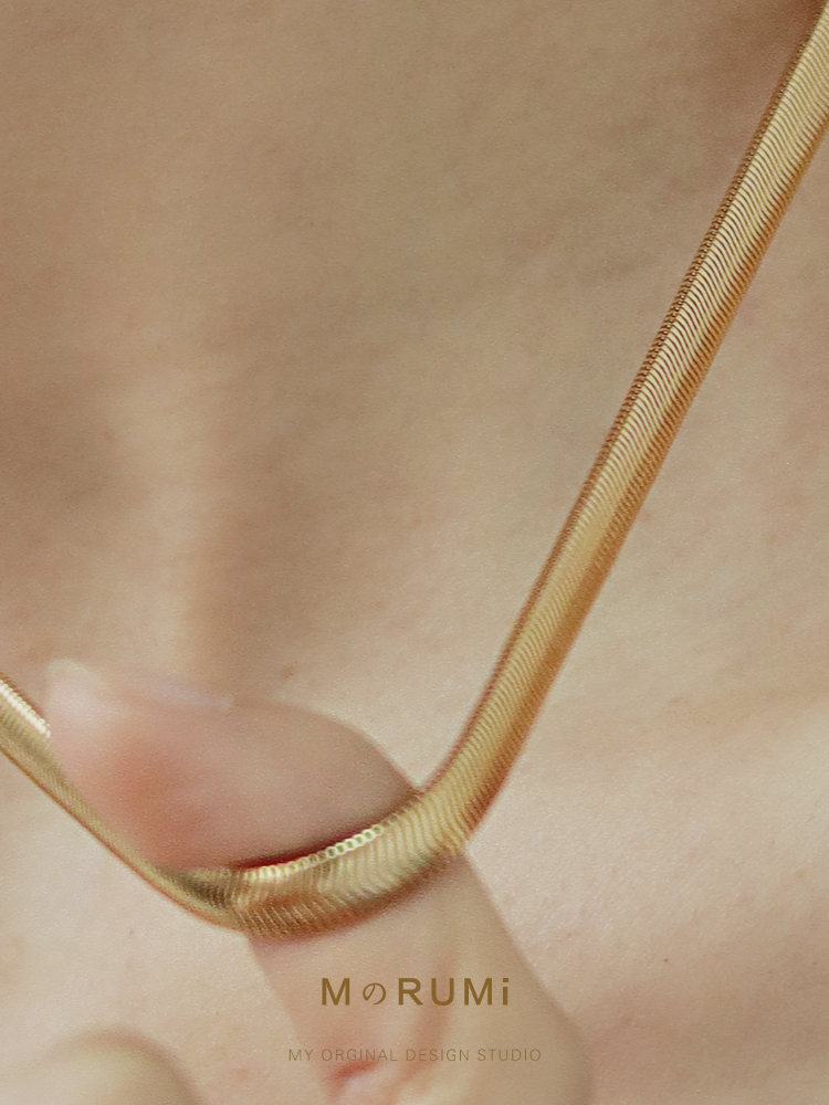 18k素金极简时髦百搭扁平蛇骨链 加宽加厚镀金时尚宽版本项链饰品