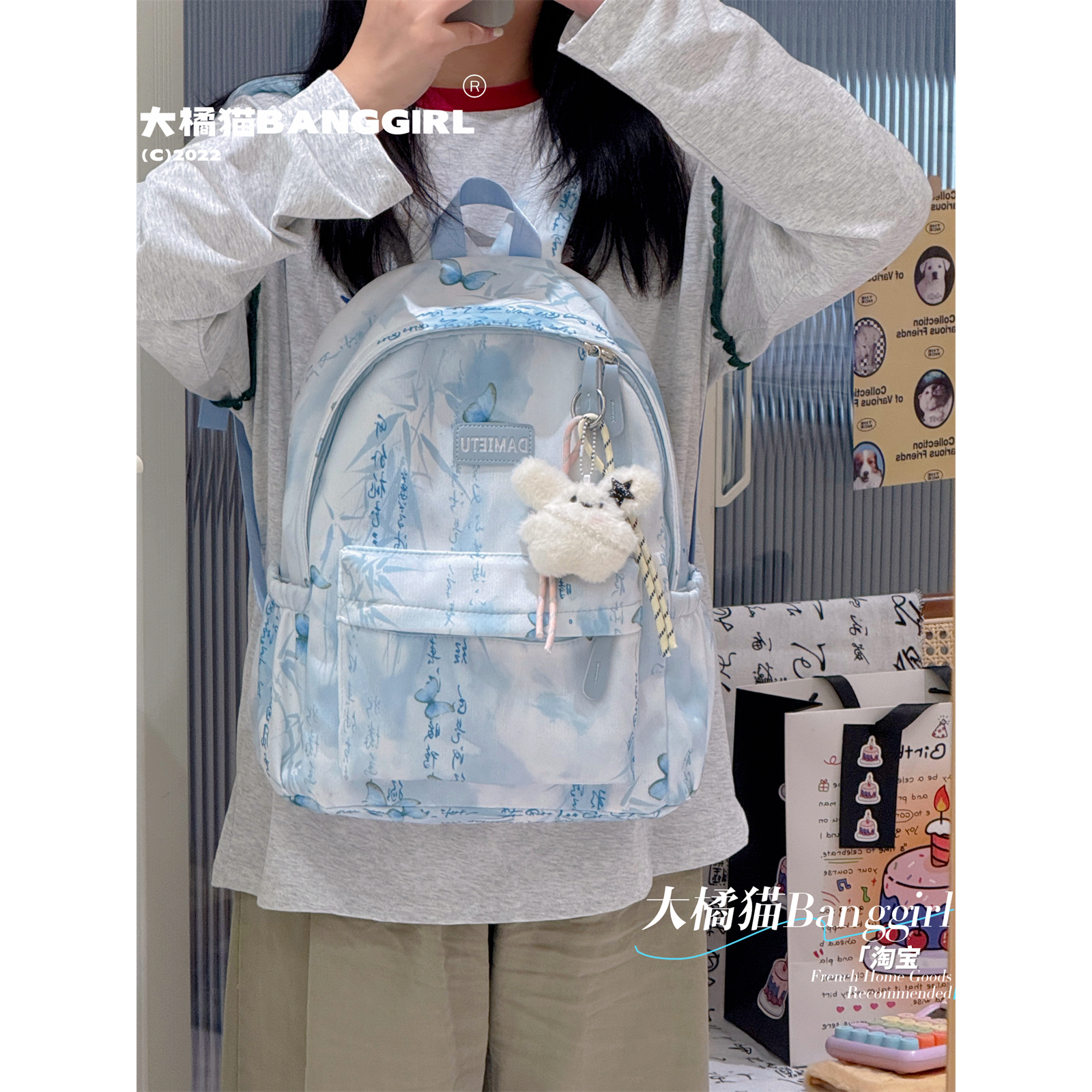 大橘猫小众国潮古风双肩包包女2025新款休闲包小背包学生上课书包
