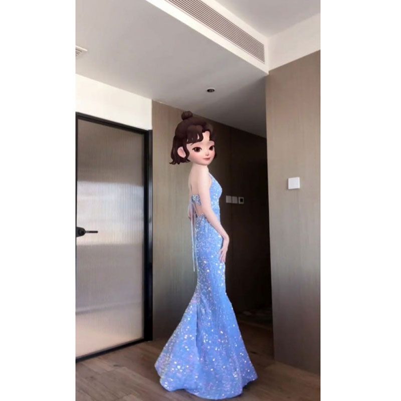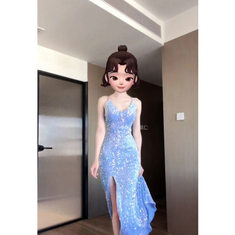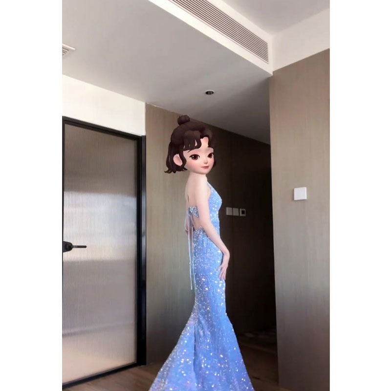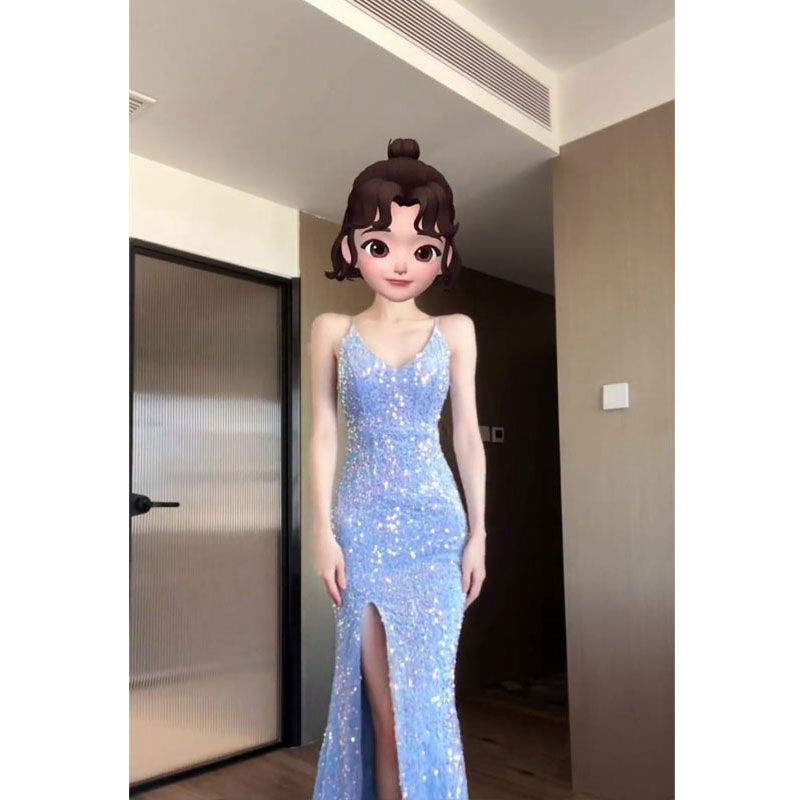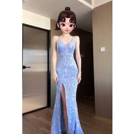 【原版当天发货】2025新款长裙正式场合气质名媛蓝色礼服连衣裙