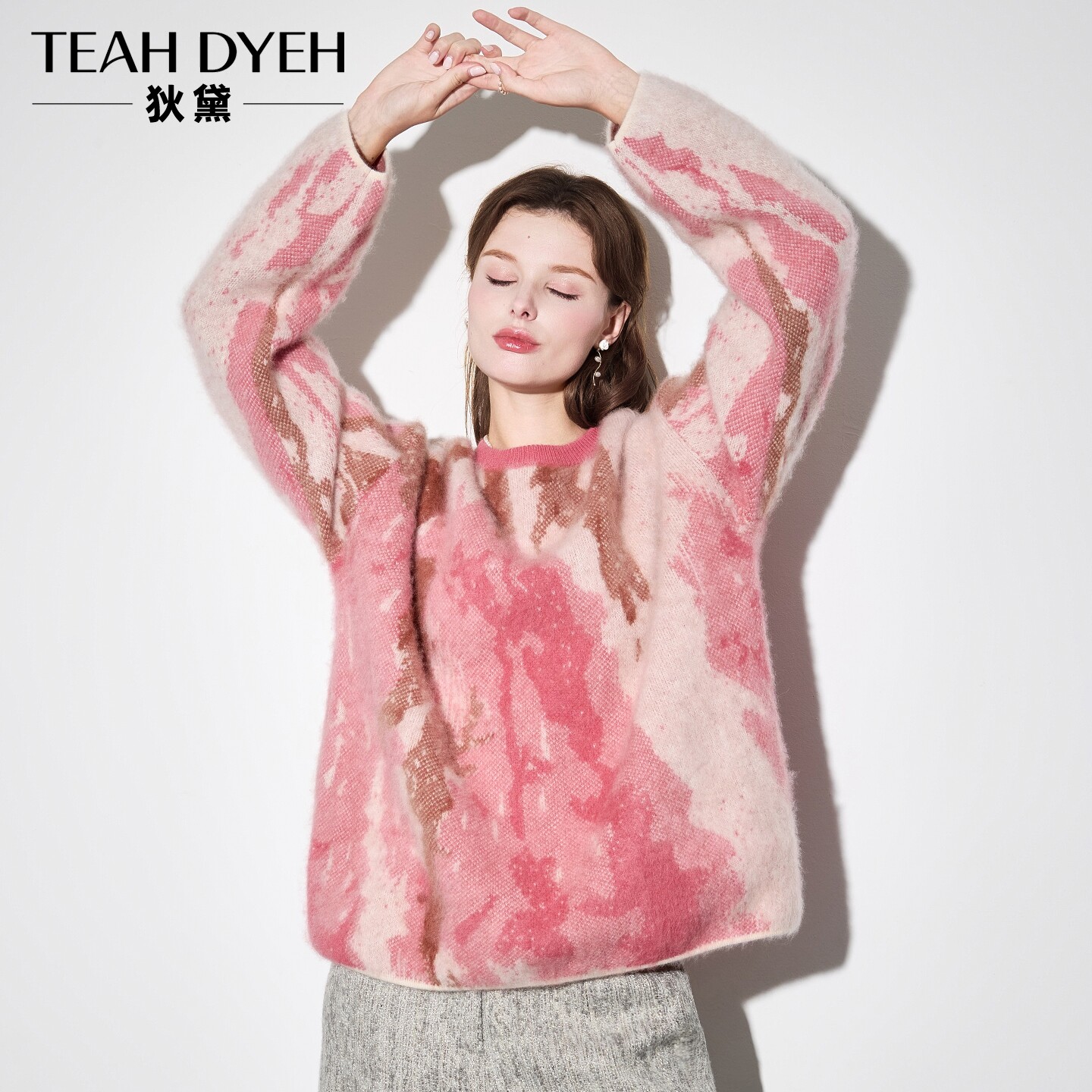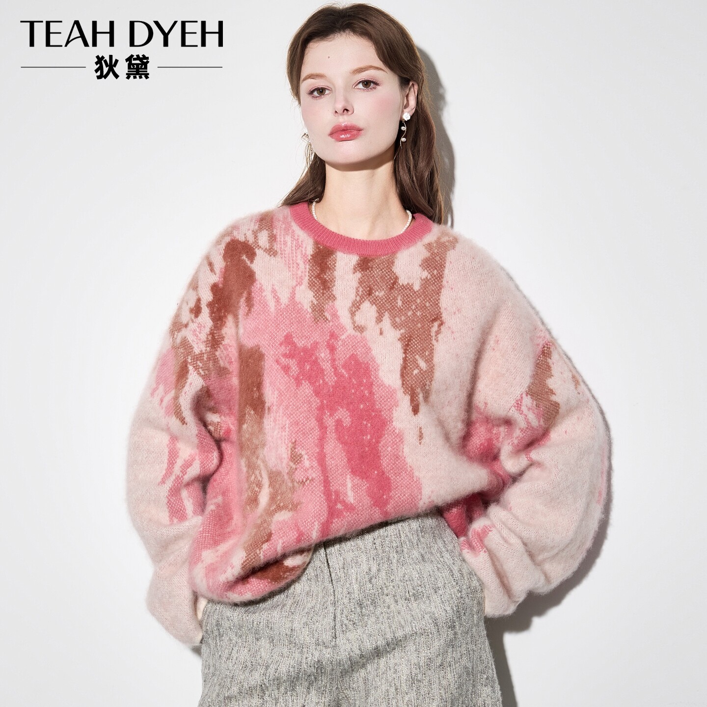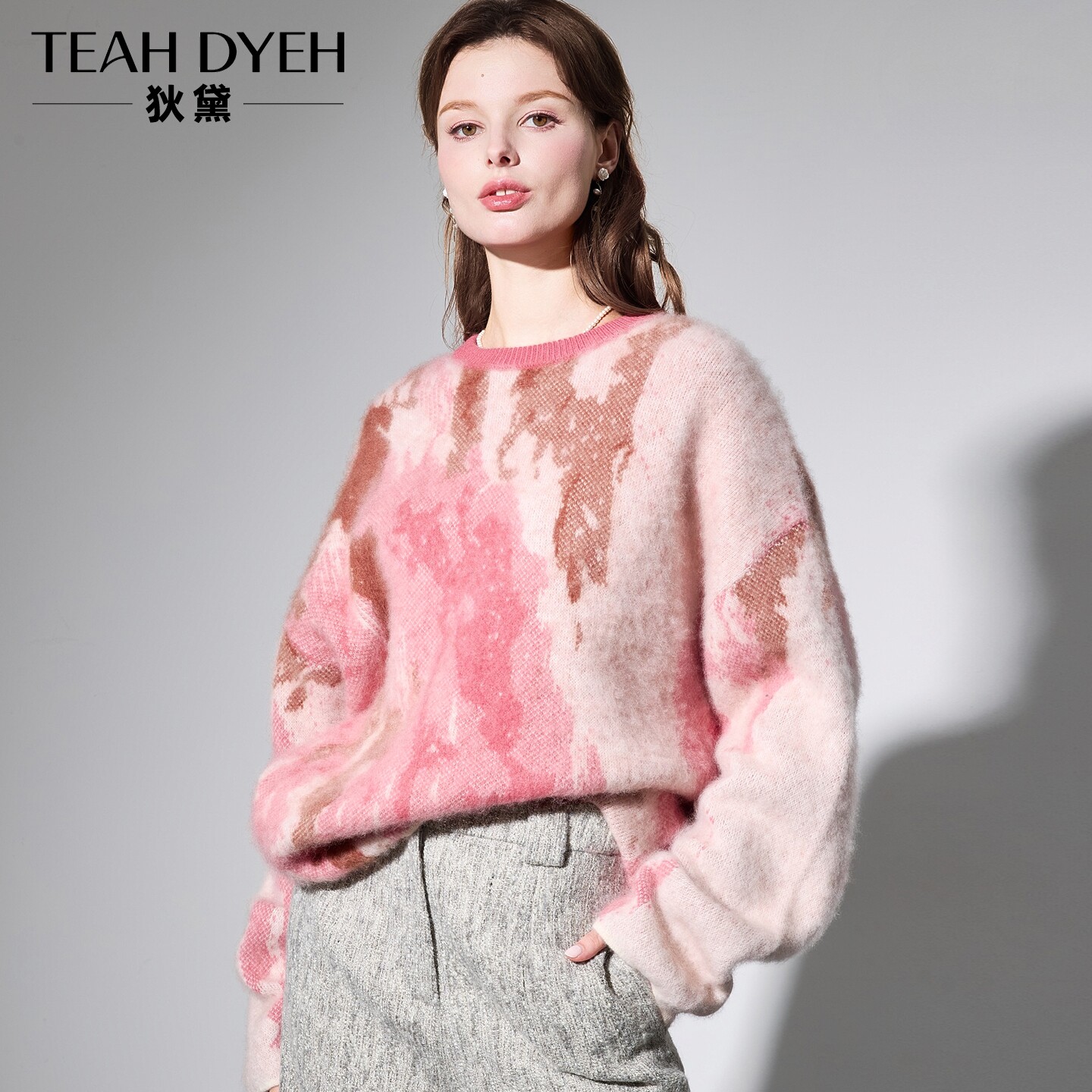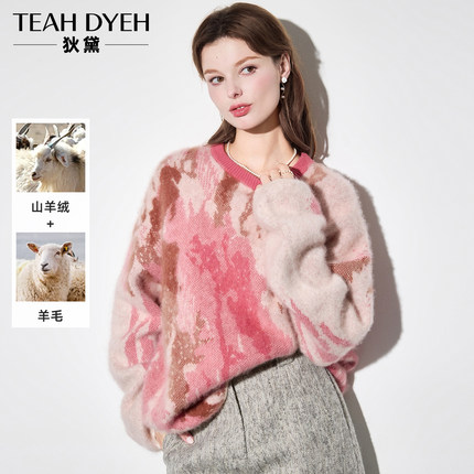 晕染拉绒粉色慵懒针织衫毛衣女冬