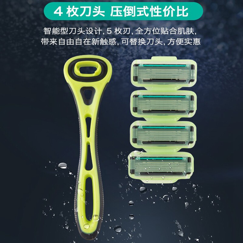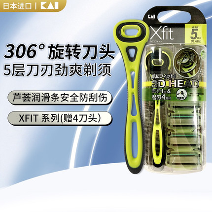 kai/贝印日本进口男士剃须刀刮胡刀非电动五5层刀刃1刀架4刀头1套