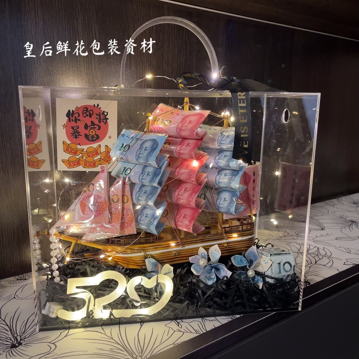 一帆风顺有钱花礼盒帆船diy手工生日礼物送给老公男士男生款惊喜