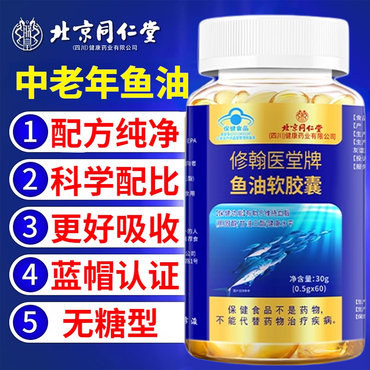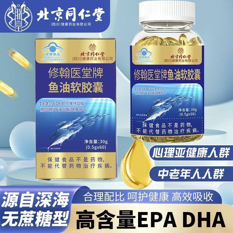 北京同仁堂深海多烯鱼油无蔗糖款鱼肝油降中老年辅助血脂加强记忆官方店的保健品