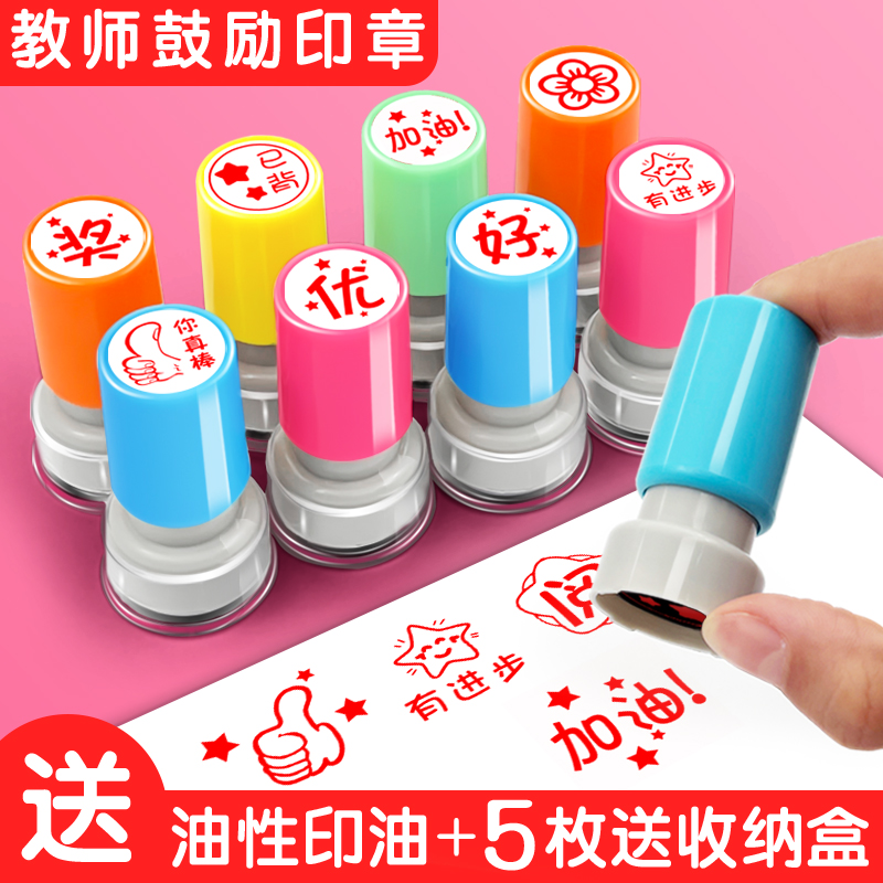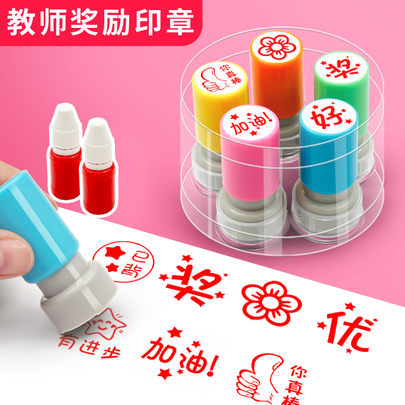 教师印章儿童印章套装卡通小学生奖励作业评语幼儿园幼儿老师表扬鼓励盖章红花教师用奖章星星图章点赞印章