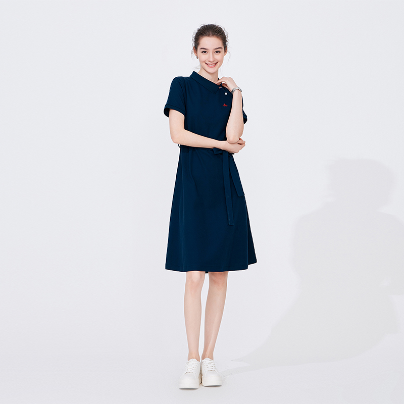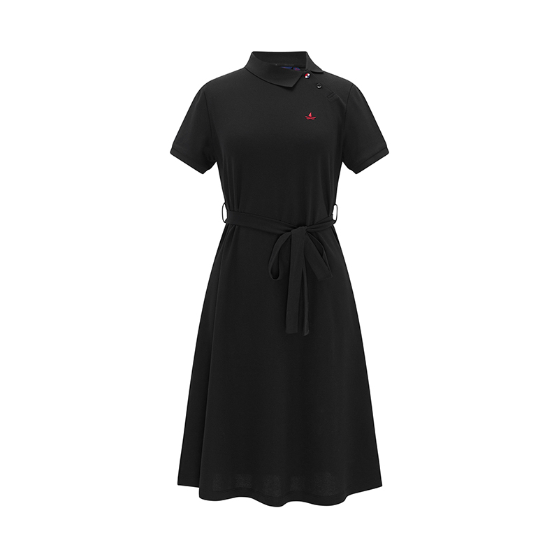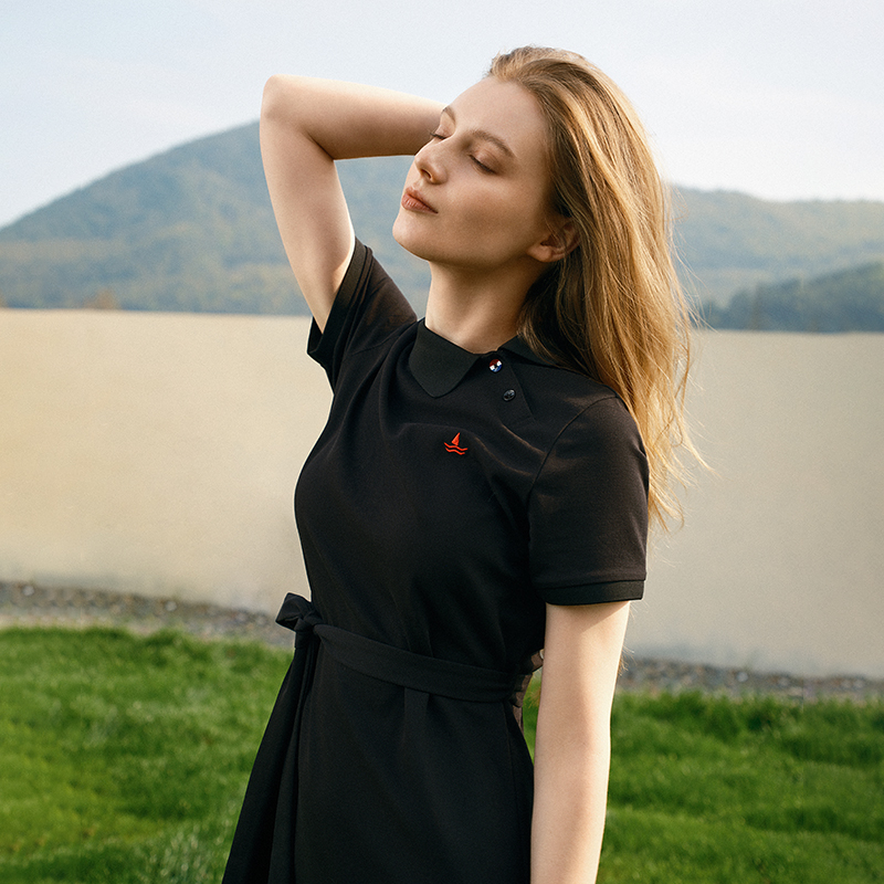 Navigare意大利小帆船短袖polo连衣裙女夏季新款黑色休闲显瘦裙子