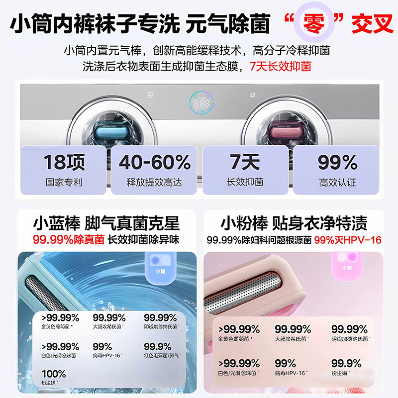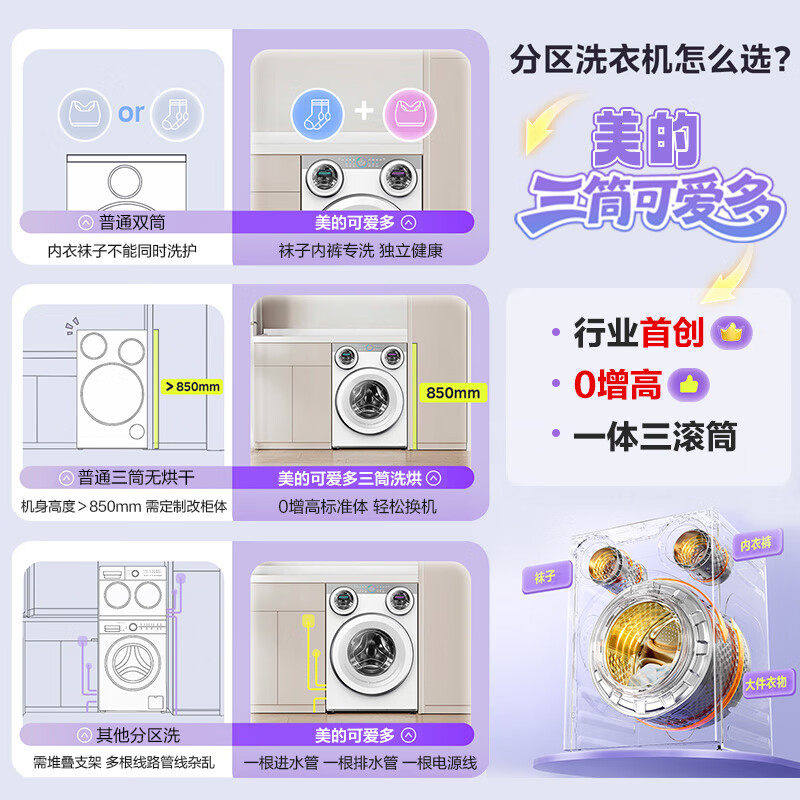 【全民补贴】美的可爱多三筒分区三桶懒人家用滚筒洗衣机洗烘一体