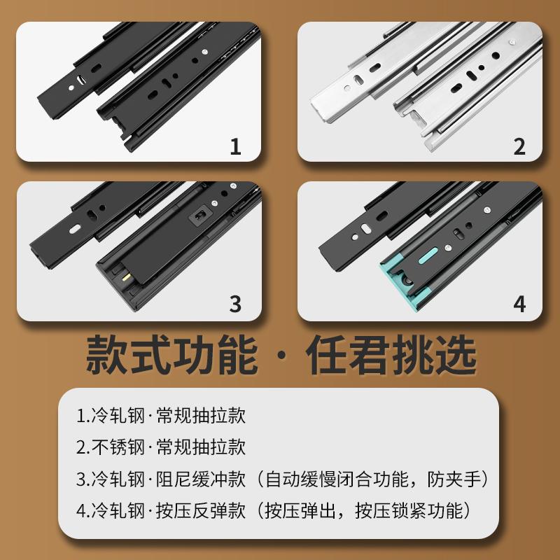 抽屉轨道阻尼缓冲静音三节轨全展侧装滑轨滚珠式橱柜滑道反弹导轨