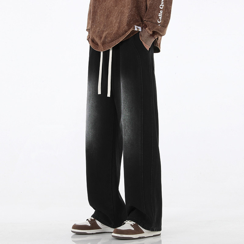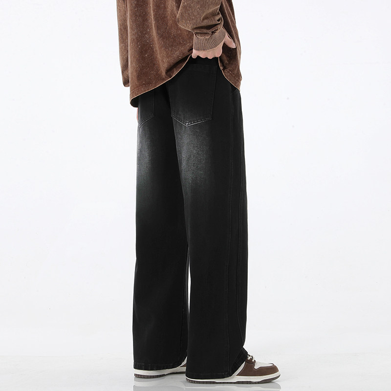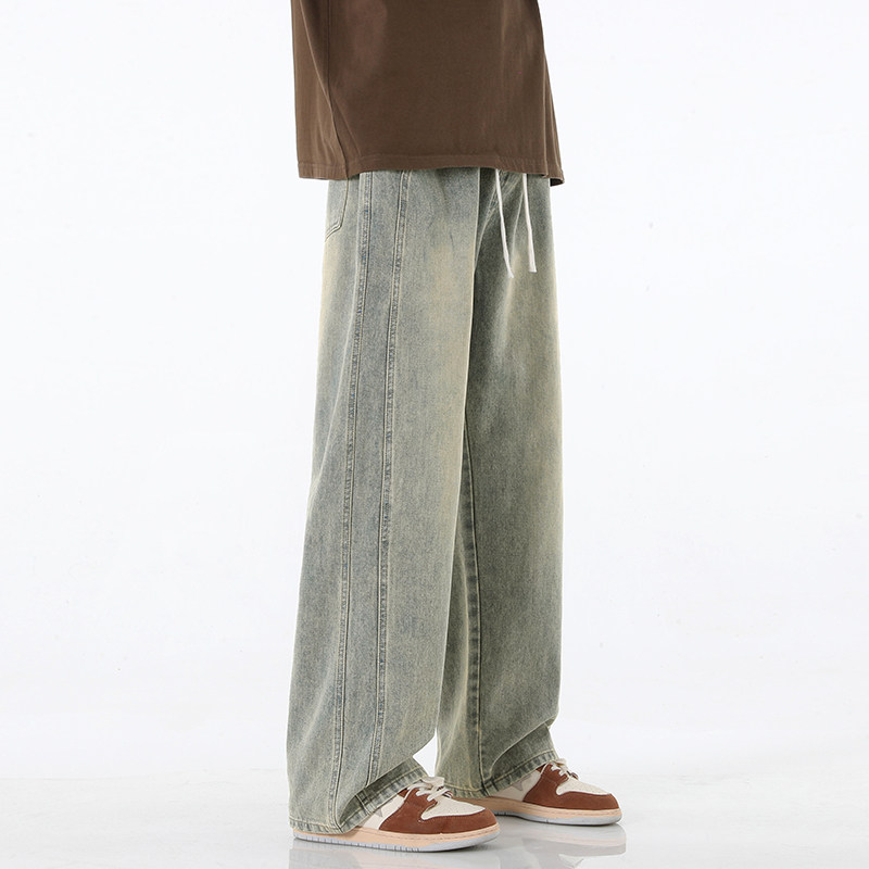 男士水洗做旧黄泥牛仔裤男宽松直筒夏季潮牌新款痞帅工装阔腿长裤
