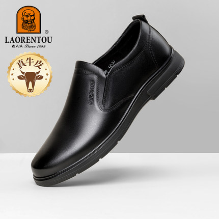 老人头皮鞋男士2026春秋季新款头层牛皮软底爸爸鞋商务休闲工作鞋