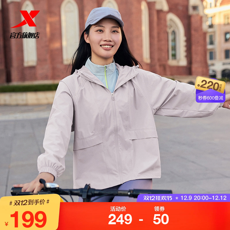 官方正品女装特步双层风衣外套新款休闲户外运动夹克876328150025