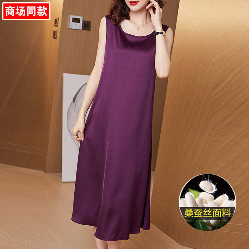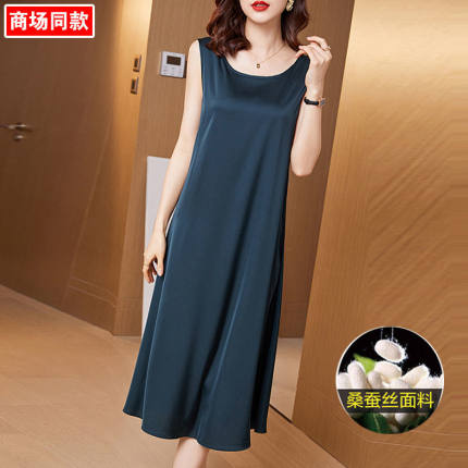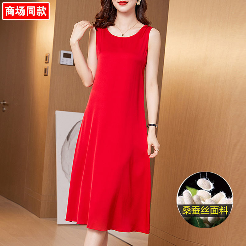 真丝连衣裙女夏装2022新款桑蚕丝无袖吊带背心裙女士大码宽松裙子
