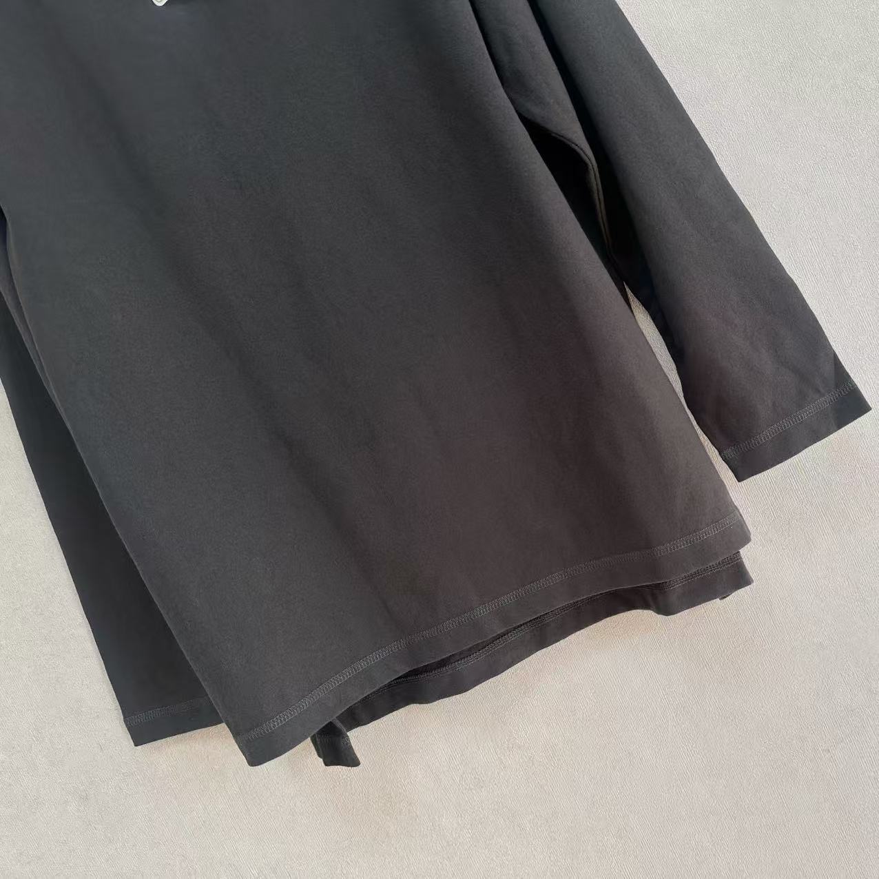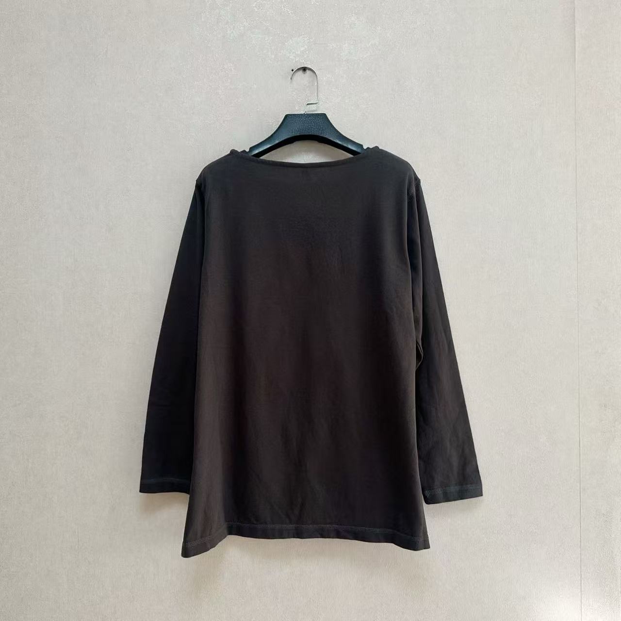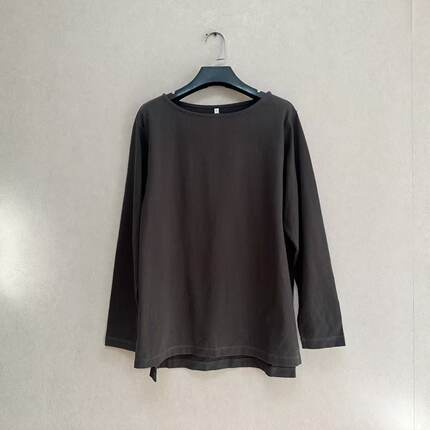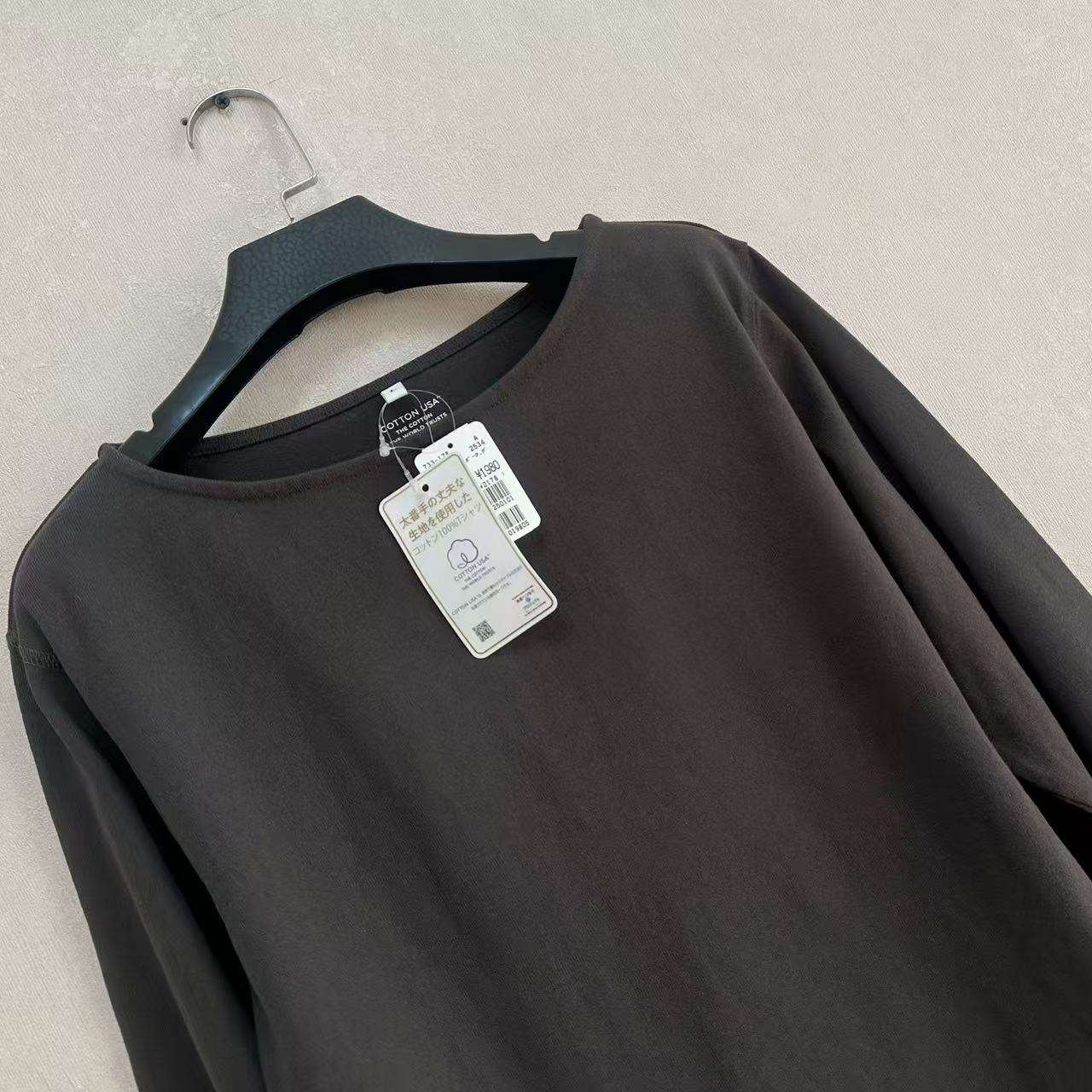 外贸出口日本COTTON USA原单美棉女炭灰色基础款长袖套头圆领T恤