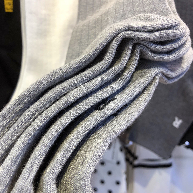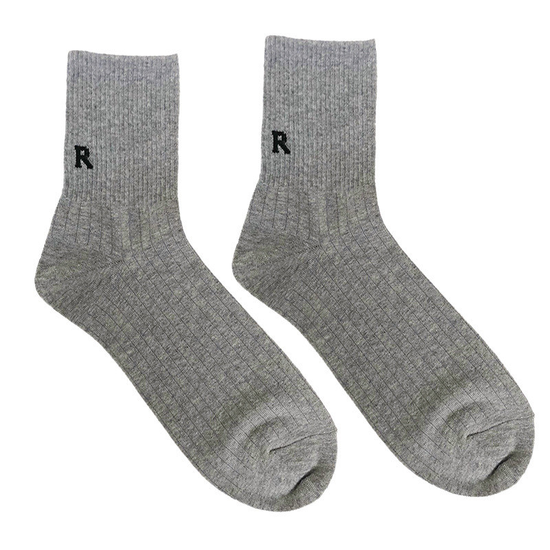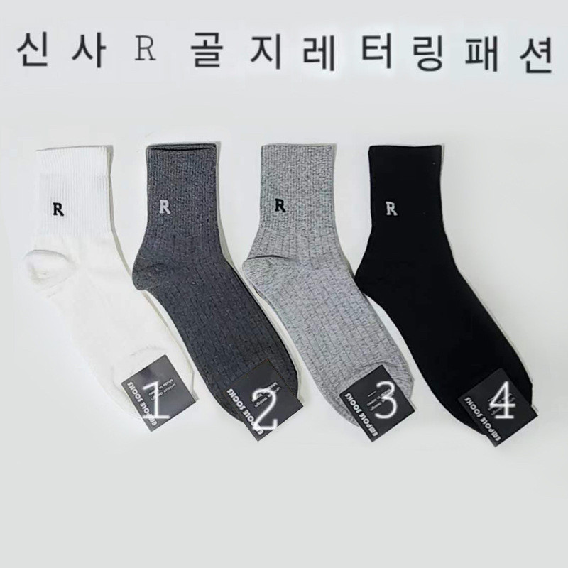 韩国EMPOLE袜子字母R男袜纯色中筒袜约竖螺纹商务休闲棉袜6050