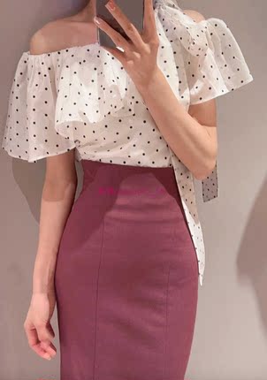 法式优雅!纯元S家 甜美单肩蝴蝶结系带荷叶边衬衫上衣