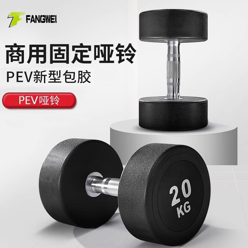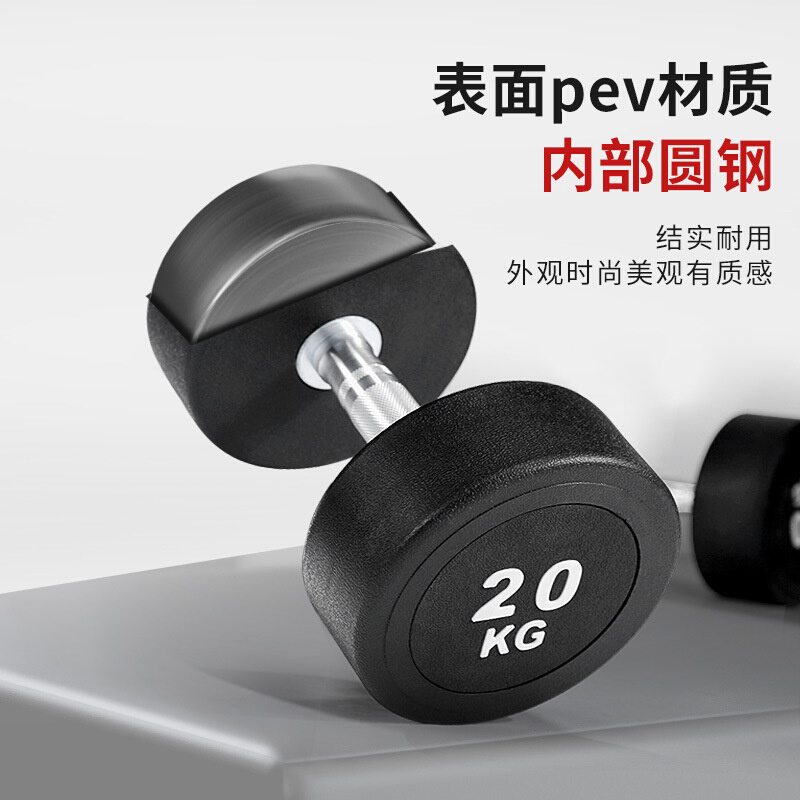 哑铃男士健身房家用商用白字圆头包胶女士纯钢固定哑铃套装组合