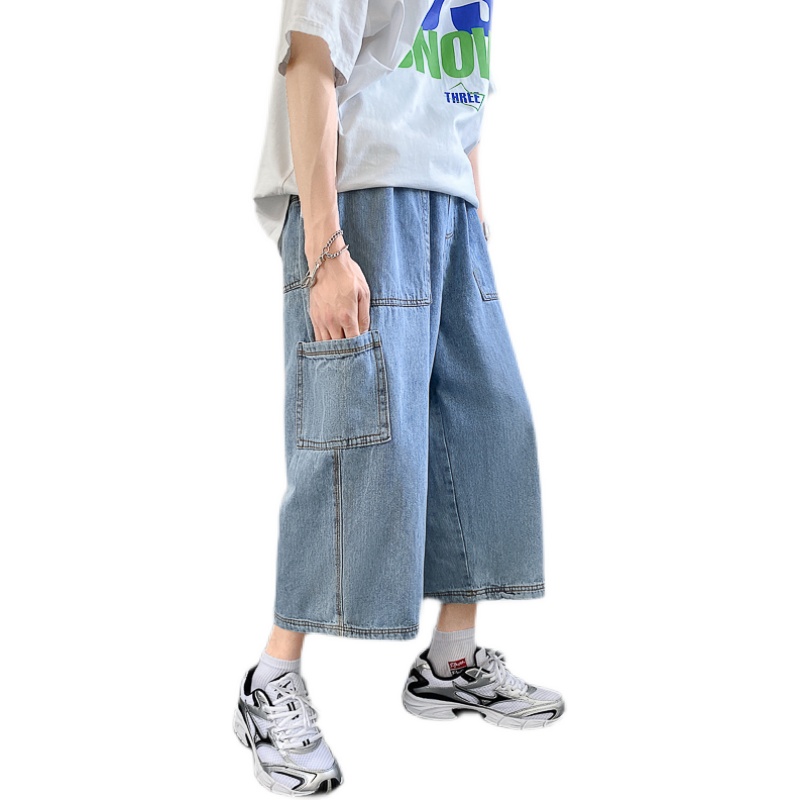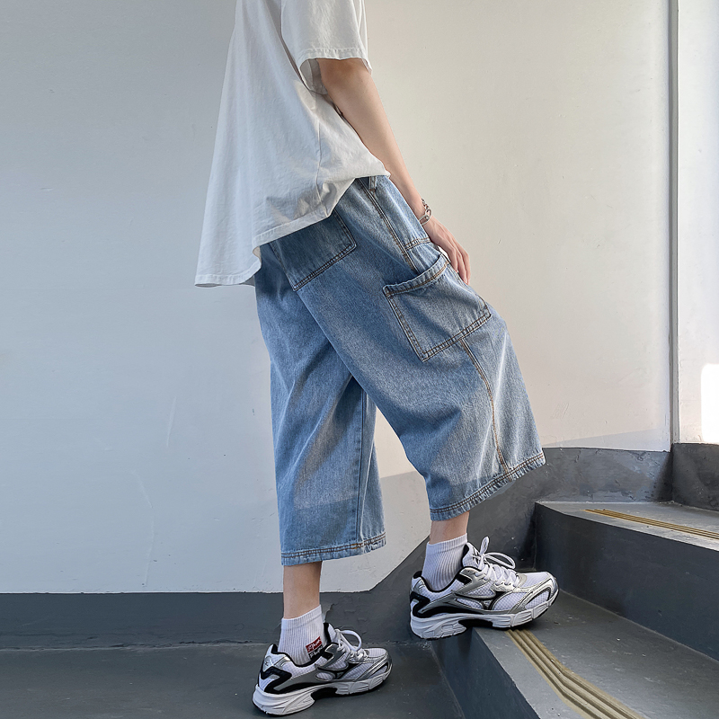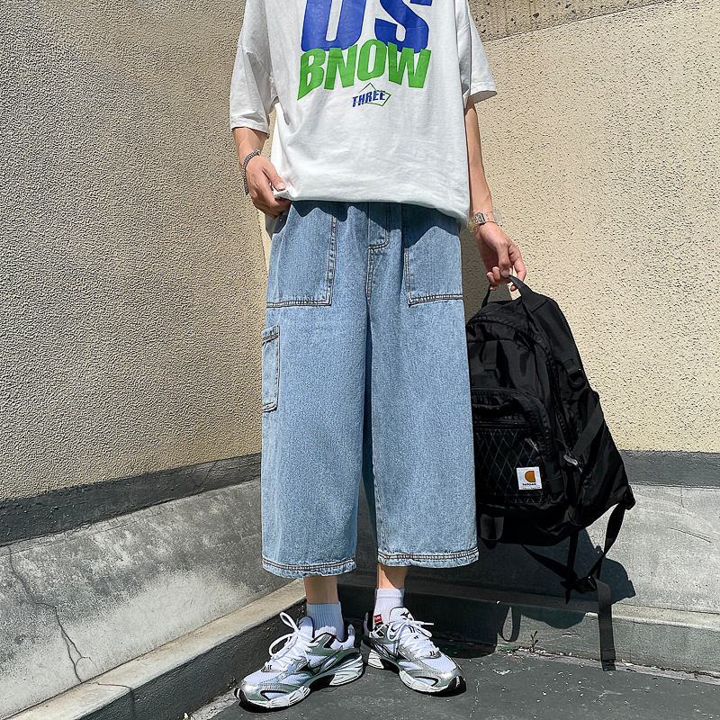 七分牛仔短裤子男士夏季薄款潮牌宽松直筒工装裤2023新款夏天中裤