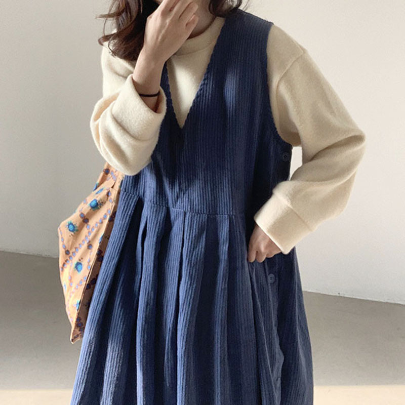 良家背心裙套装灯芯绒