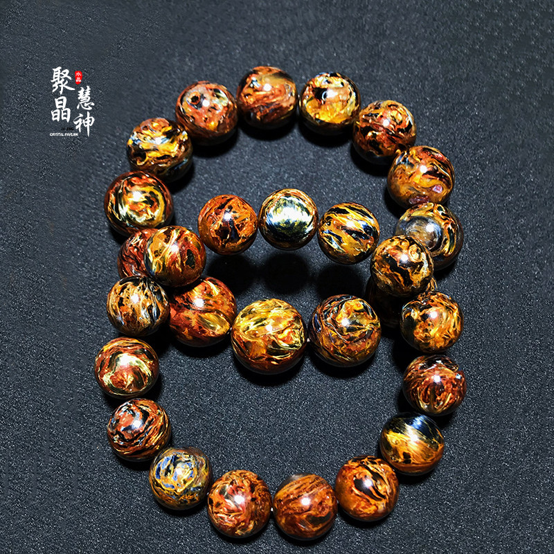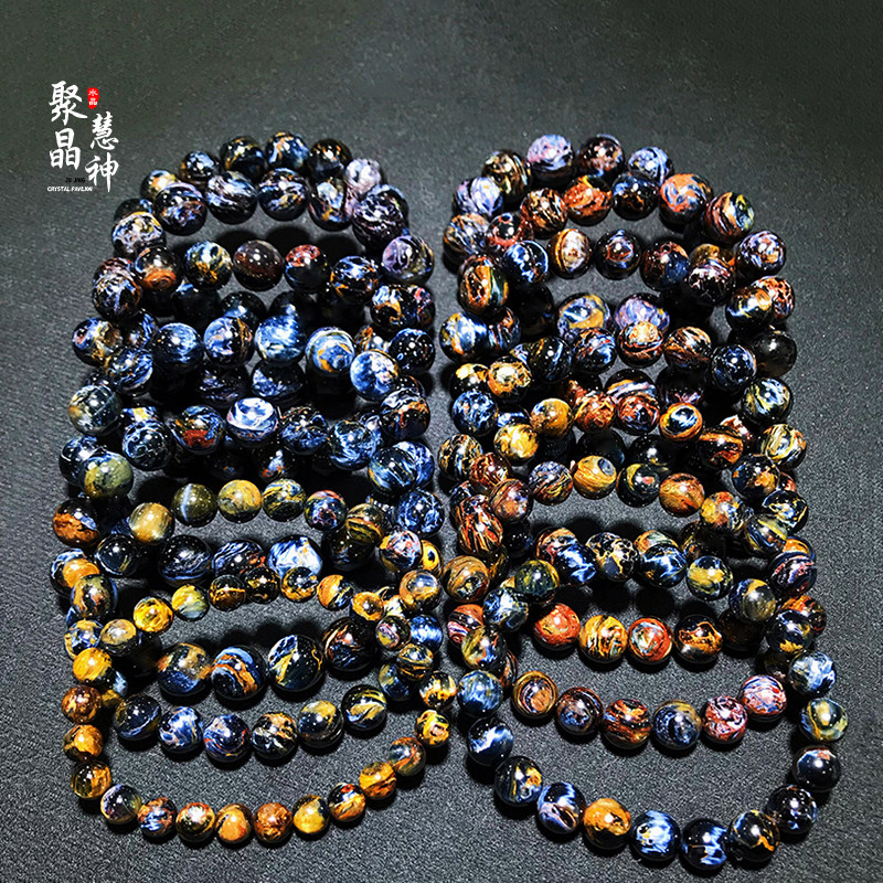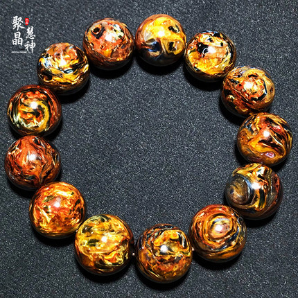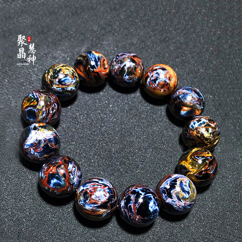 聚晶慧神火彩蓝彼得石硅化玉手串