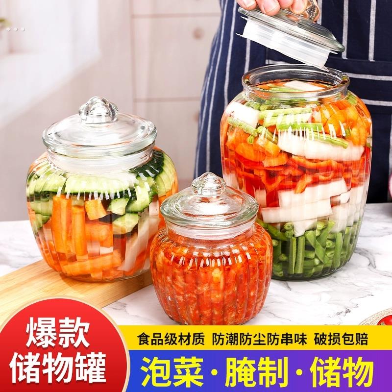 泡菜罐玻璃泡菜坛子家用厨房食品级腌制咸菜储物罐腌菜杂粮密封罐