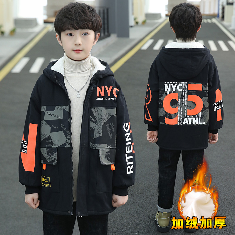 男童加绒外套风衣2025新款中大儿童冬装加厚棉衣男孩洋气派克服潮