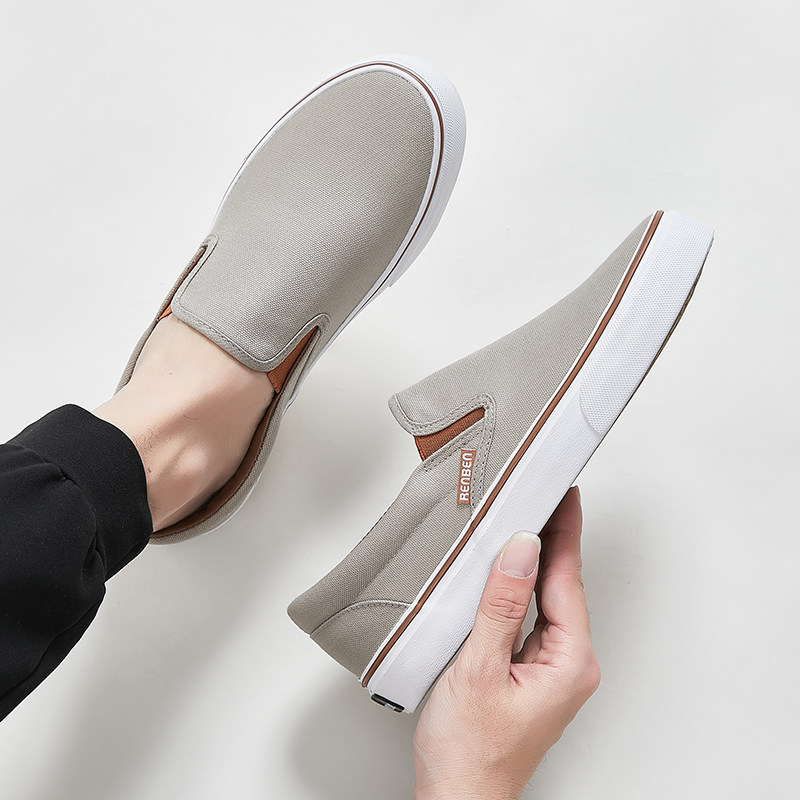 人本男鞋帆布鞋男款春夏季鞋子男士板鞋懒人一脚蹬男鞋